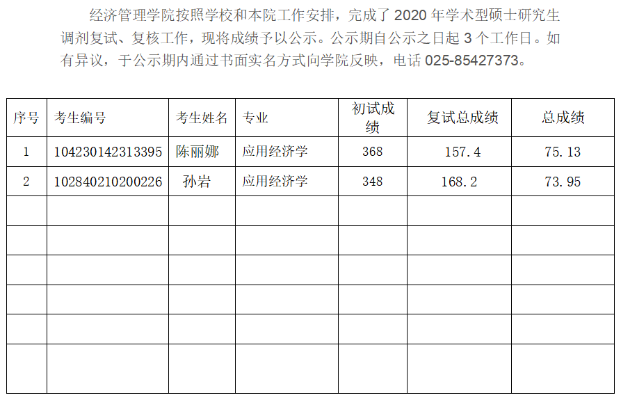 学术型硕士研究生调剂复试成绩公示