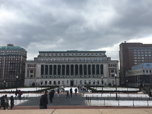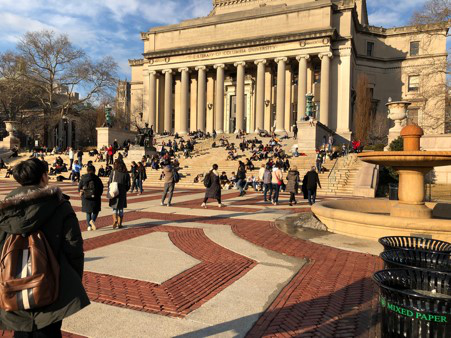 第一次来到国外一流大学的校园,感受到的还是与国内大学深深的不同。哥大的历史比美国国家的历史还长,整个校园都散发古朴的气息。在天气好的时候也能看到很多学生在图书馆门口的台阶上看书学习,学习氛围很浓厚。