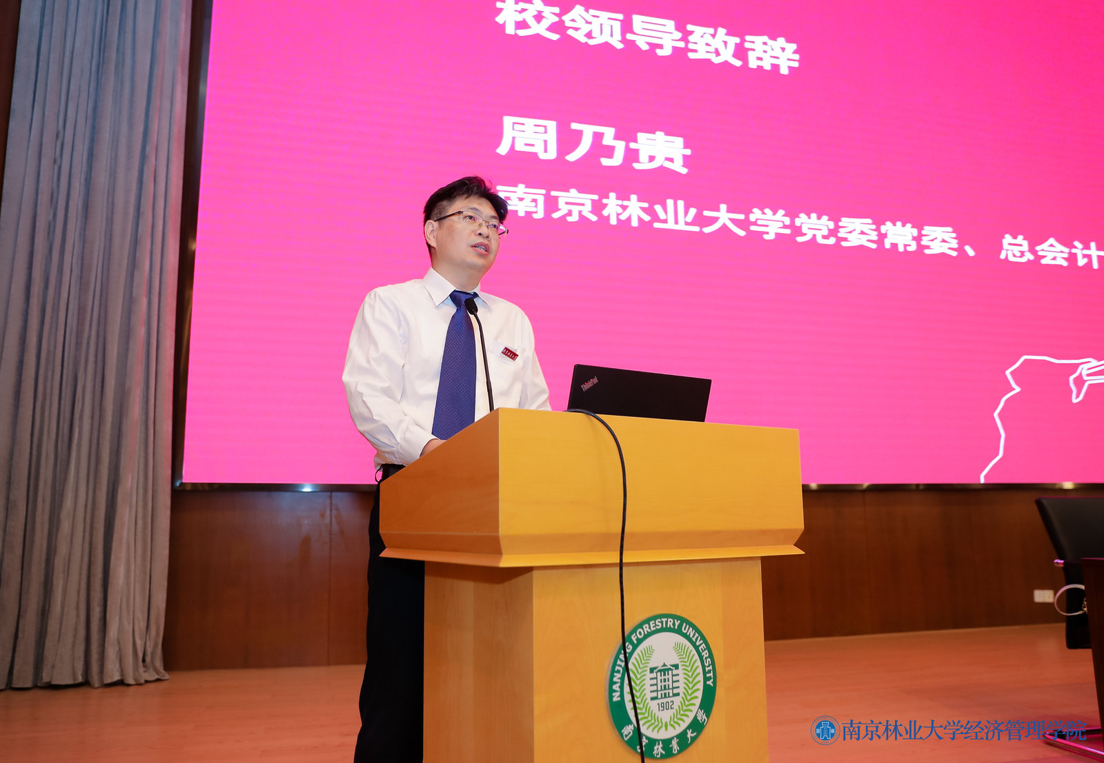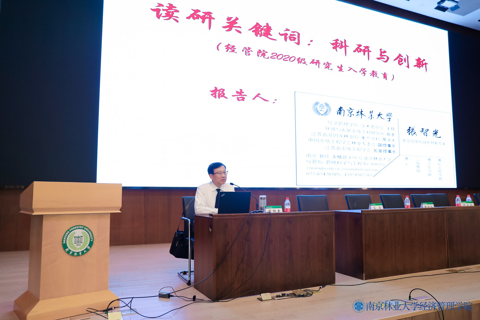 金秋九月,丹桂飘香,2020年9月13日下午两点,南京林业大学经济管理学院2020级研究生开学典礼在新图书馆8B118隆重举行,校党委常委、总会计师周乃贵、研究生院副院长南军锋、经济管理学院学术委员会主任张智光、院党委书记唐萍、院长杨加猛、副书记兼副院长蔡志敏、副院长张晖、副院长杨爱军、院团委书记兼学工办主任洪春奇、工商管理系主任赵航、工商管理系支部书记谢海涛、管理科学与工程主任张玲、专业学位办主任邱强、农林经济系副主任张燕媛、应用经济学系副主任钟马等参加了开学典礼,典礼由院党委副书记兼副院长蔡志敏主持。
