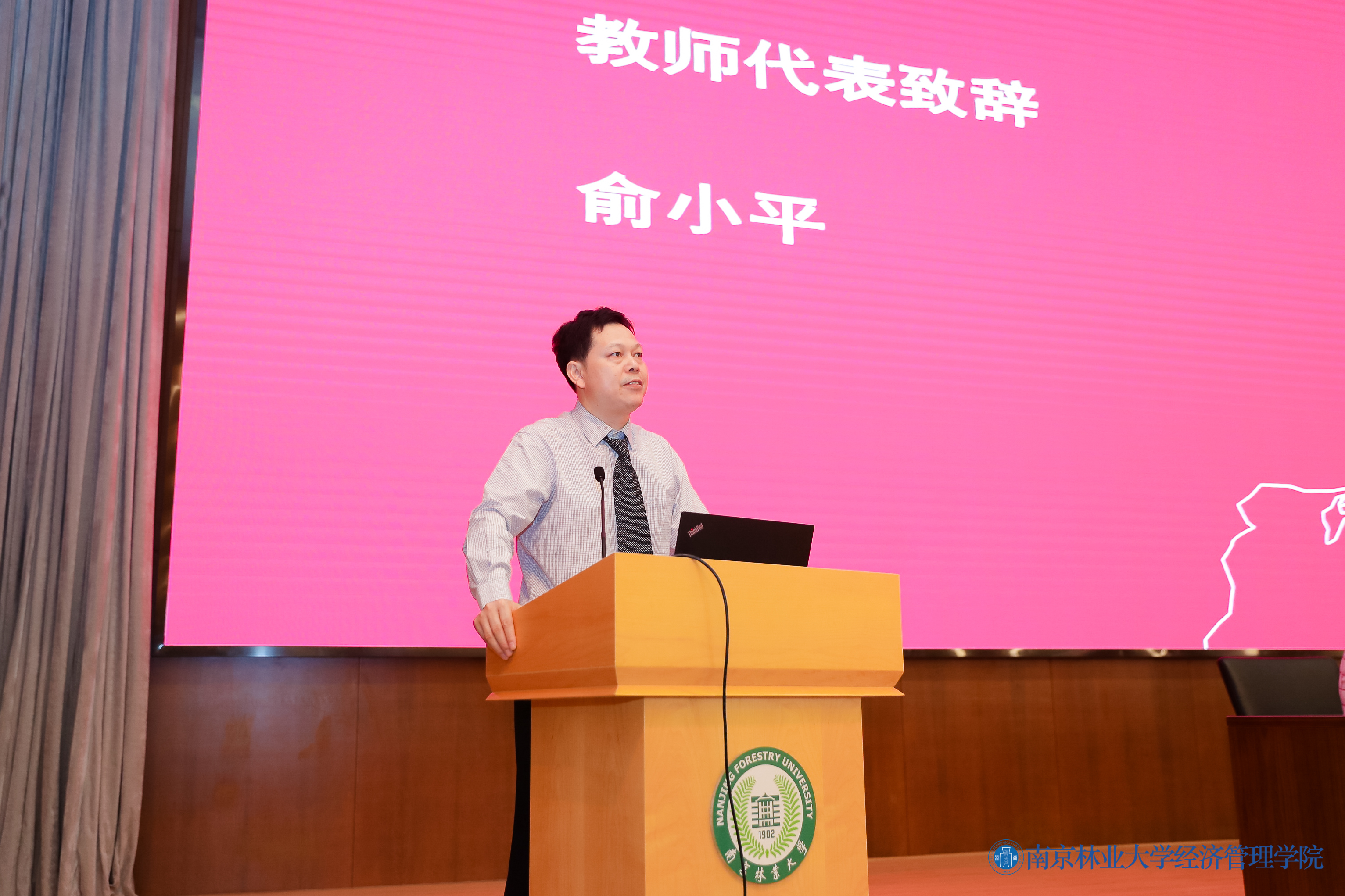 导师代表俞小平深情寄语新同学。他说,每一位同学都是能够创造无穷财富的个体,希望在导师的带领和指导下,同学们能主动做好学习规划,在未来三年里不断从汲取知识转变为创造知识,不断提升自己的价值。