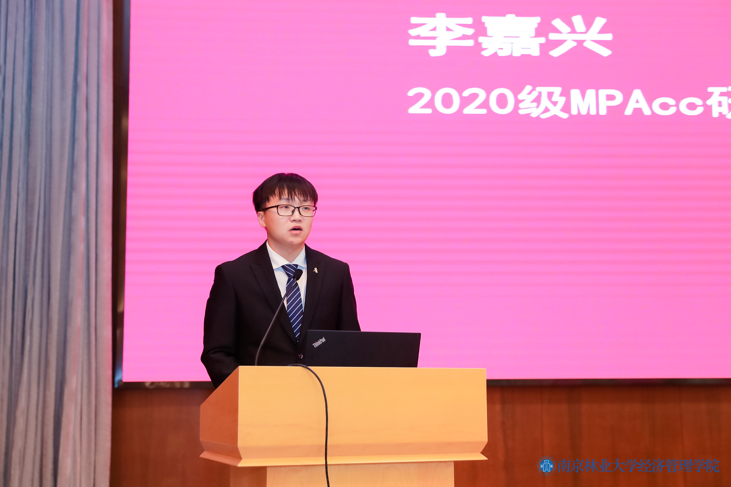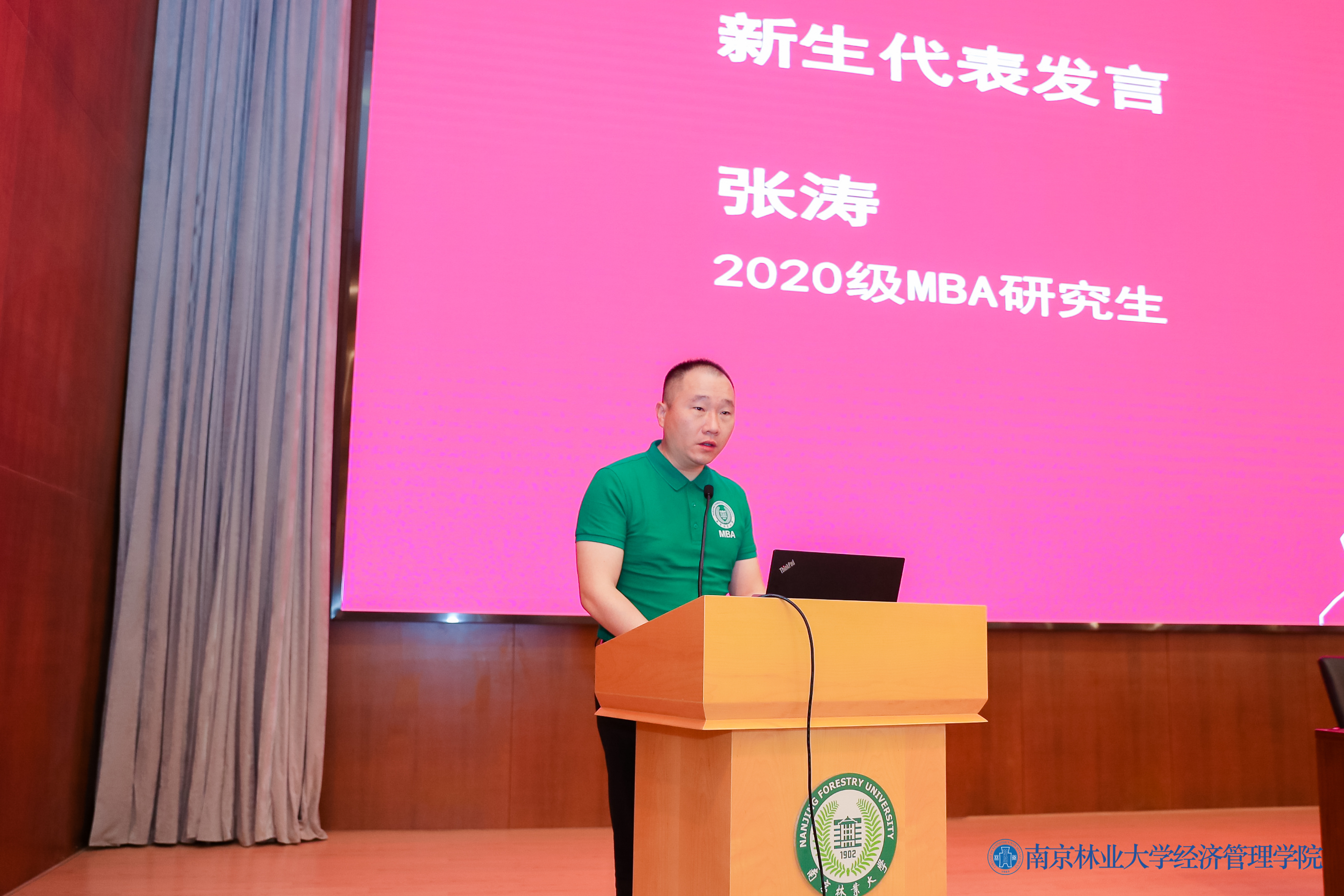2020级农林经济管理专业硕士研究生余智涵、MBA研究生代表张涛及MPAcc研究生代表李嘉兴等同学代表新生发言。