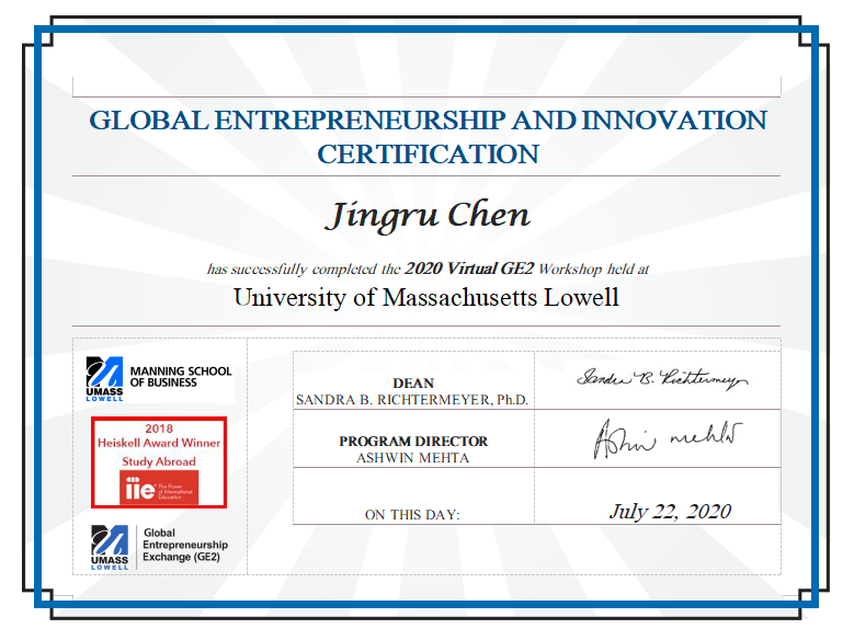 2020年7月,由美国麻省大学罗威尔分校曼宁商学院主办的全球创新创业交流会(Global Enterpreneurship Exchange)如约而至。由于疫情影响,本次GE2项目的课程改为在线上进行,时间地点上更加方便灵活,这也使得更多学生踊跃参与,我院20余名学生参与了本次项目。本次GE2项目依旧是两周课程,课程包括如下八个课题: