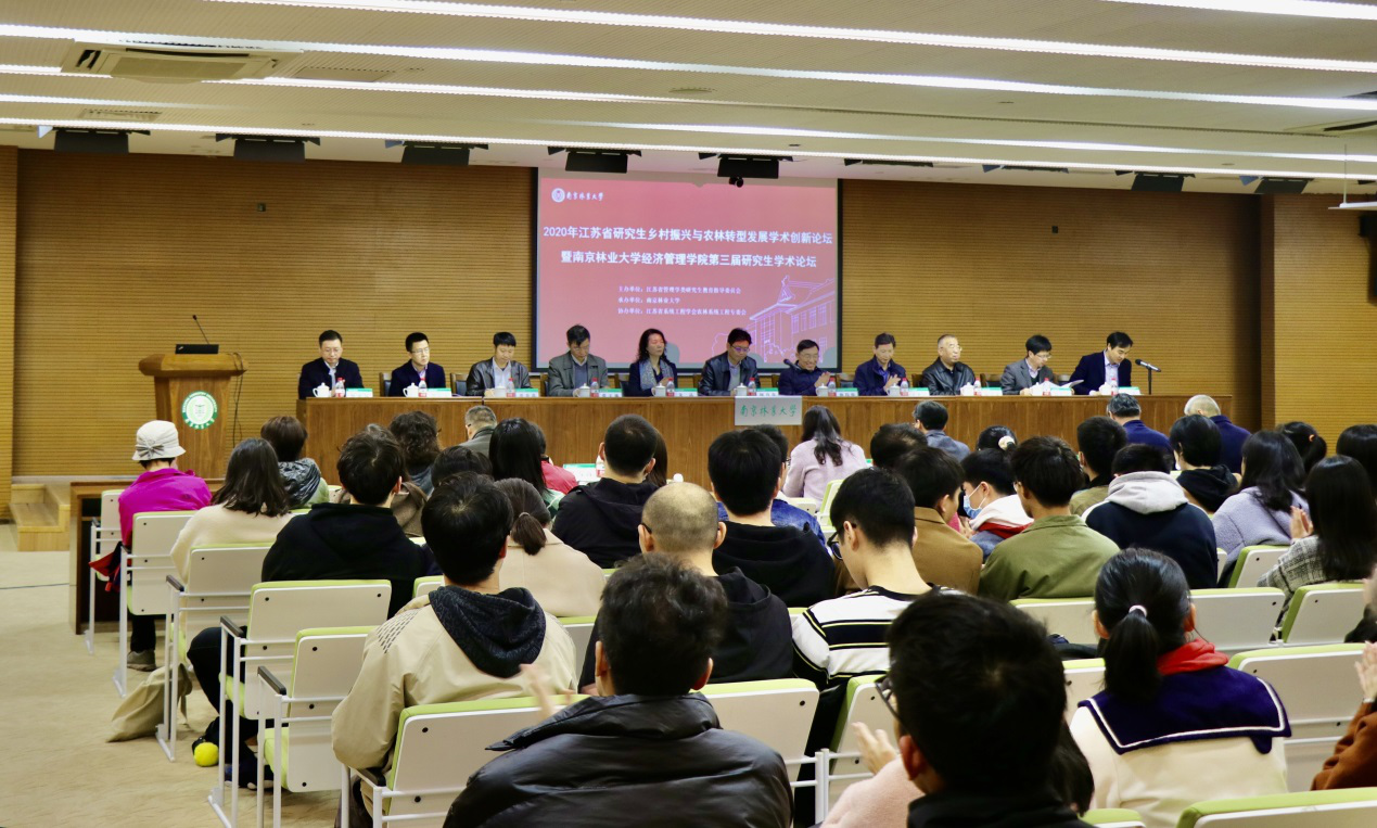 2020年11月22日,江苏省研究生乡村振兴与农林转型发展学术创新论坛暨南京林业大学经济管理学院第三届研究生学术论坛在我校举行。此次论坛由江苏省管理学类研究生教育指导委员会主办,我校经济管理学院承办,旨在聚焦乡村振兴与农林转型发展成果,培养研究生科研创新能力。