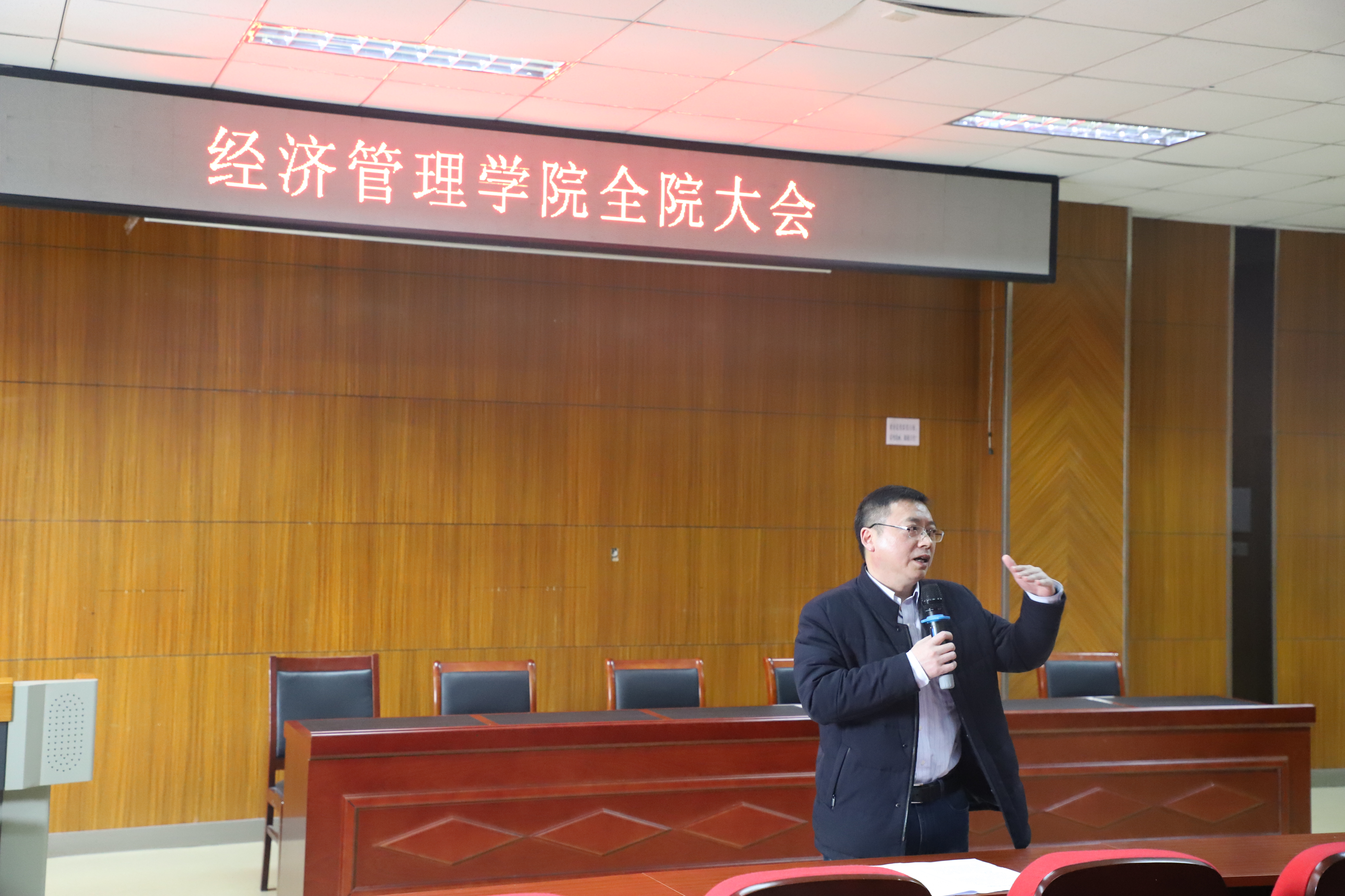 2021年3月10日,经济管理学院在C105教室召开2021年新学期全院大会,总结2020年学院工作,部署2021年重点工作。学院全体教职工参加会议,会议由学院党委书记唐萍主持。