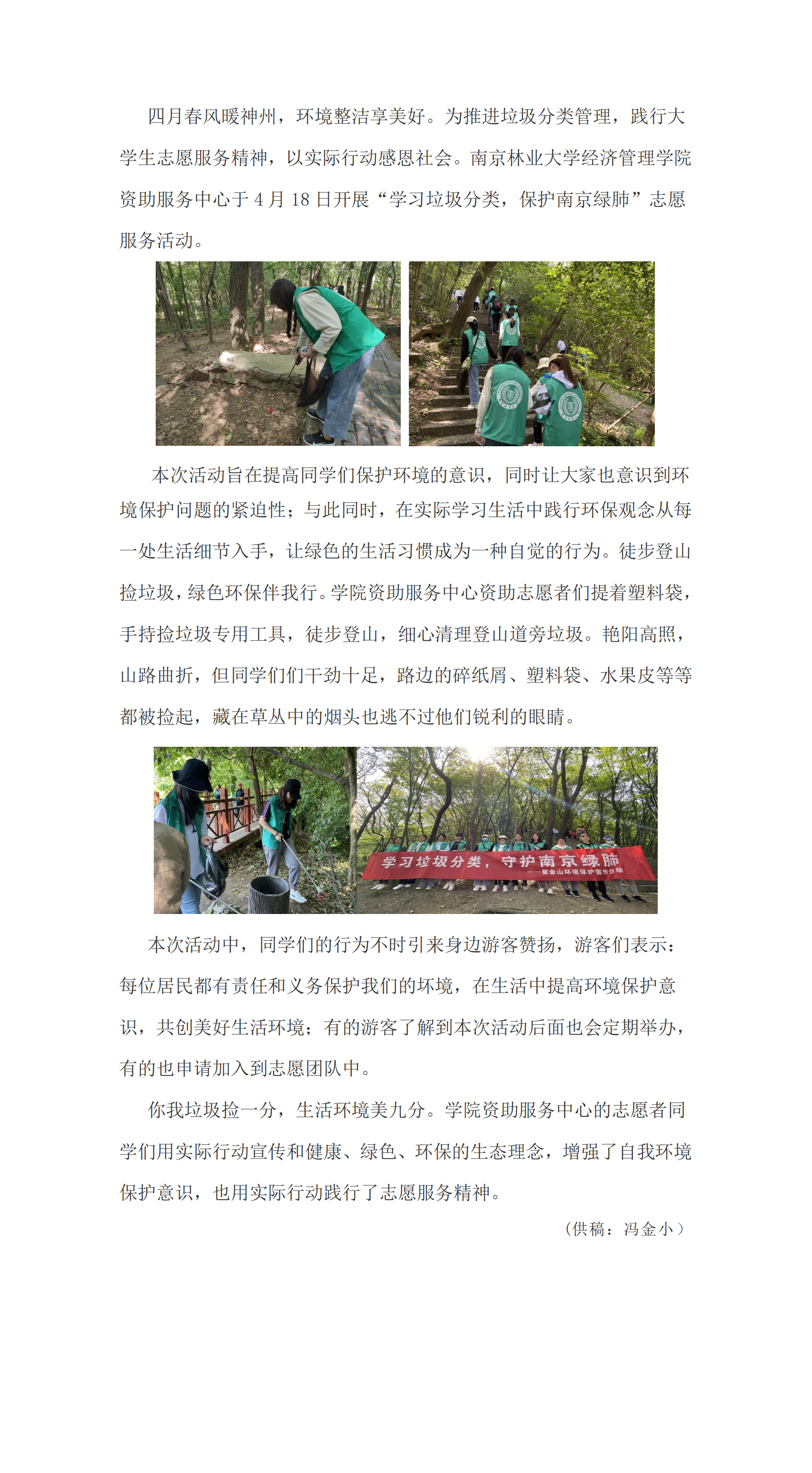 学习垃圾分类 保护南京绿肺——经济管理学院资助服务中心开展特色志愿服务活动