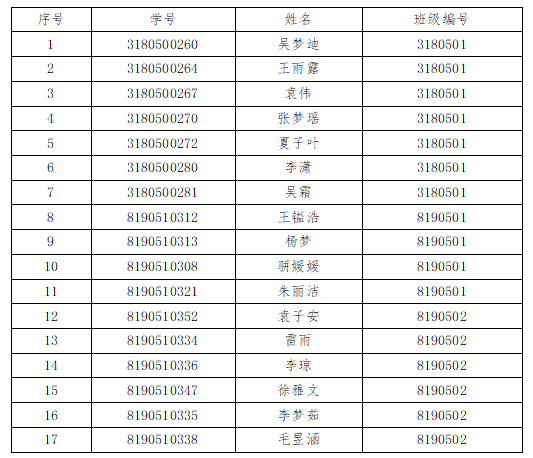 根据《关于评选南京林业大学2021届研究生优秀毕业生的通知》,经学生个人申报、学院党政联席会议讨论,评选出以下17名研究生优秀毕业生,现将名单公示如下。公示期:2021年5月13日-5月17日。如有任何异议,请于5月17日18时前与经济管理学院研究生辅导员联系。反映情况和问题须实事求是,客观公正。提倡署名或提供联系方式,以便调查核实,及时反馈。