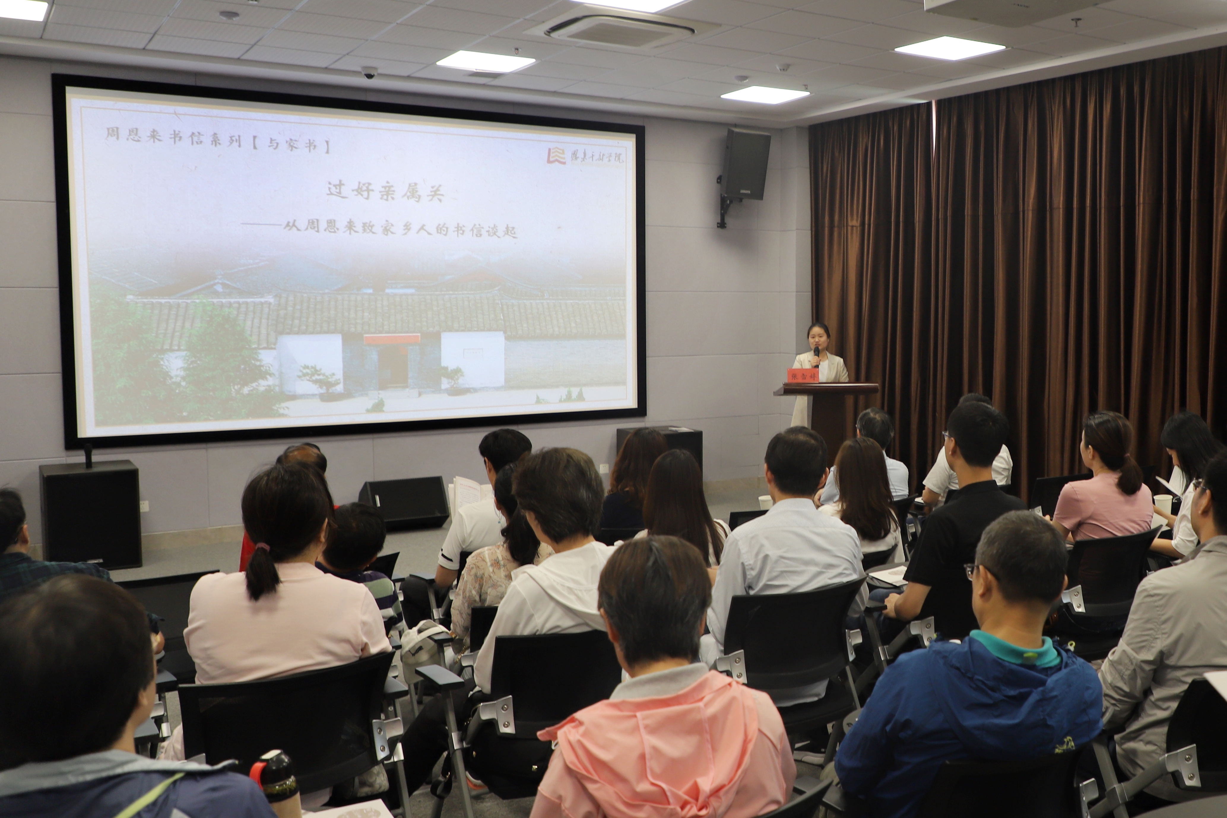 在周恩来干部学院,教师们以“周恩来同志如何过好‘亲属关’”这一主题在淮安恩来干部学院老师张雪婷的带领下,通过阅读周恩来同志致家乡人的书信,还原了书信的历史背景,了解了周恩来与亲人之间故事、与家乡的联系。他曾告诫领导干部要过好思想关、政治关、社会关、亲属关、生活关,保持共产党人的政治操守和优良作风。他是这么说的,更是这么做的。一个多小时的沉浸式党课,大家看到了周恩来同志处理亲属关系问题上坚持不搞特殊、不谋私利的态度,更深刻地感受到他严于律己、清正廉洁、率先垂范的优良作风。