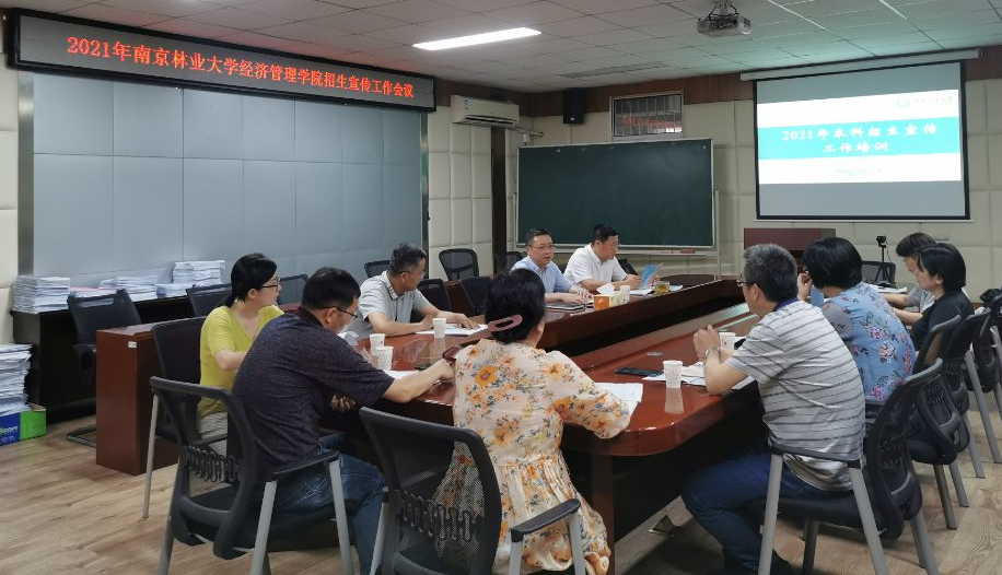 为进一步提升学校知名度和影响力,吸引更多优质生源报考南京林业大学,不断提升生源质量,经济管理学院以“校院配合、重心下移、创新思路,优化方案,突出特色,提高效果”为基本指导思想,于6月23日下午,在学院C208会议室召开2021年招生宣传工作会议。