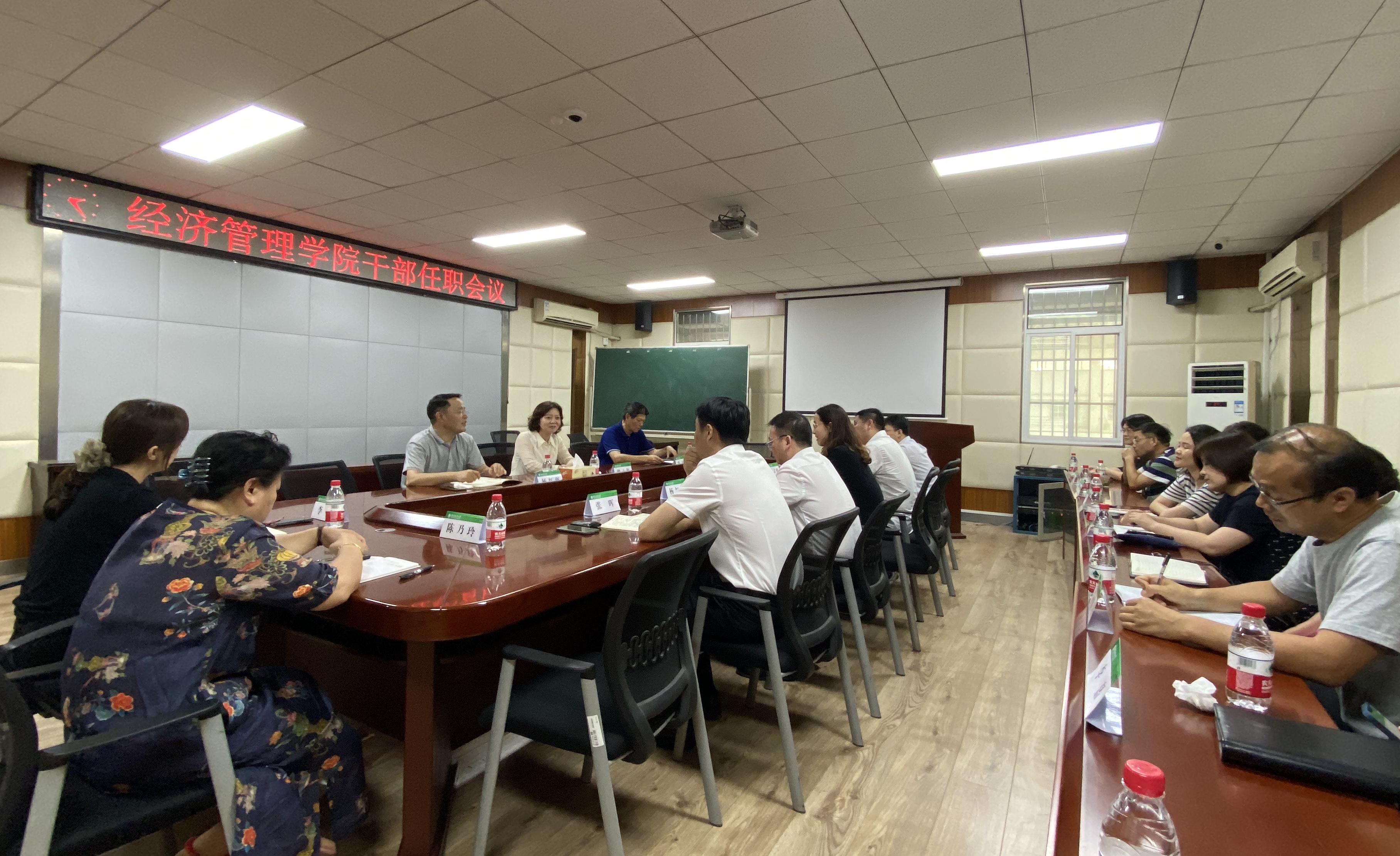 2021年7月14日下午,杨红强同志担任经济管理学院副院长(主持工作)任职会议在经管院C208会议室举行,校党委常委、副校长缪子梅,校党委组织部部长陈大胜,学院党政领导、院办公室、团委、工会和实验室负责人、各系主任及党支部书记参加了任职会议。会议由校党委组织部陈大胜部长主持。