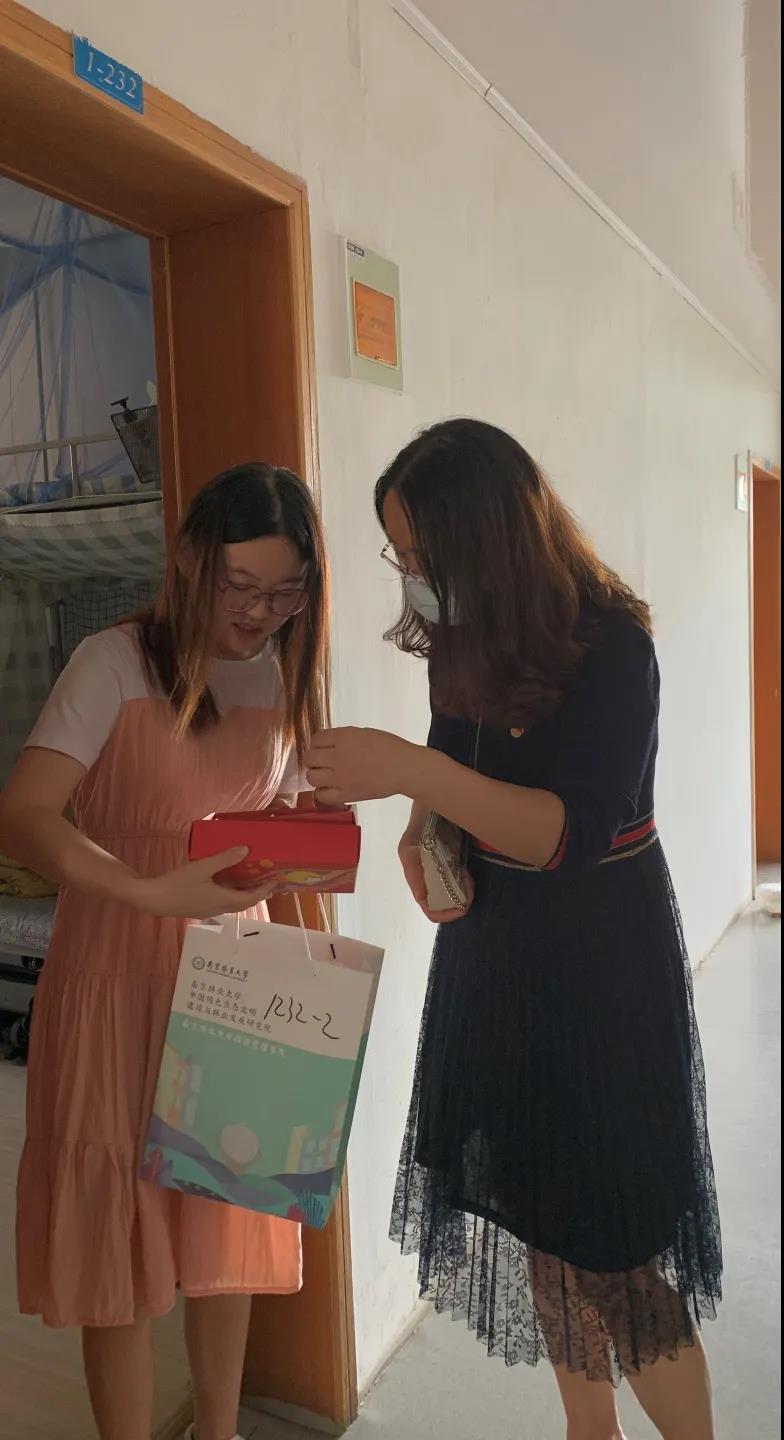 一年一度中秋佳节临近之际,为给我校学生送去温暖,学校为全体留校学生发放南林定制中秋月饼。借助此次学校特色资助活动,学院党委书记唐萍、党委副书记、副院长蔡志敏、团委书记、学工办主任李倩、以及辅导员老师们深入学生宿舍,向学院留校的同学发放学校定制的中秋月饼,为同学们送上中秋温暖的祝福。