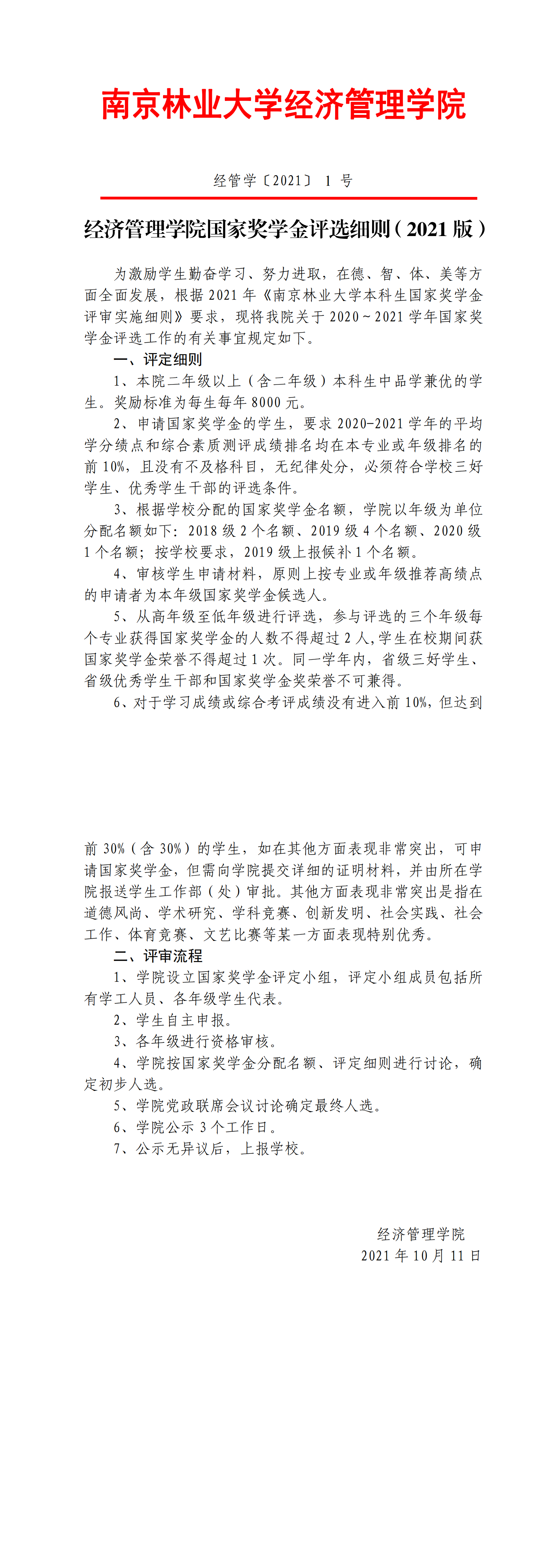 经济管理学院2025年本科生国家励志奖学金评比细则公示