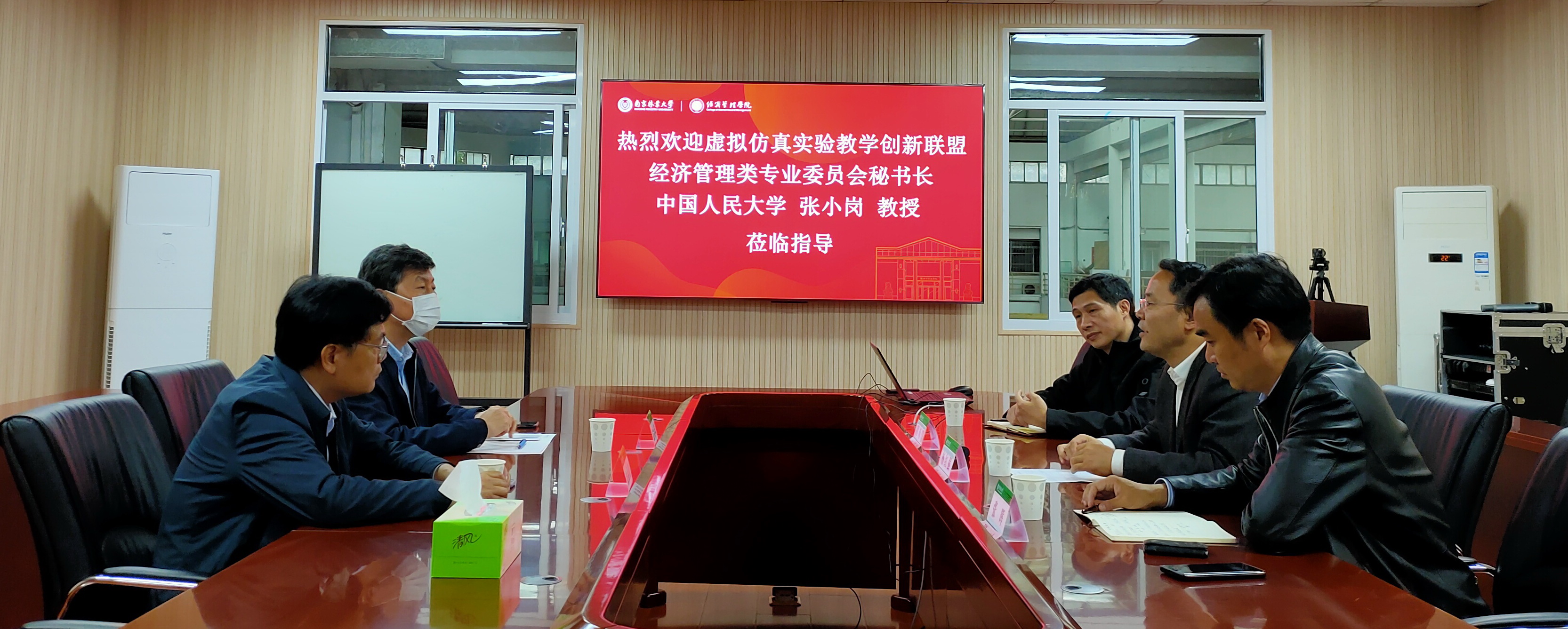 张小岗教授对我院结合学科特色建设的虚拟仿真项目给与积极肯定,并简要介绍了全国经济管理类虚拟仿真实验教学项目的申报程序及项目遴选,同时对我院《景区多场景局部突发客流超载应急管理虚拟仿真实验》的后期建设和特色凝练等问题进行了具体指导。双方还围绕经济管理类其他虚拟仿真项目建设的可行性进行了深入交流。