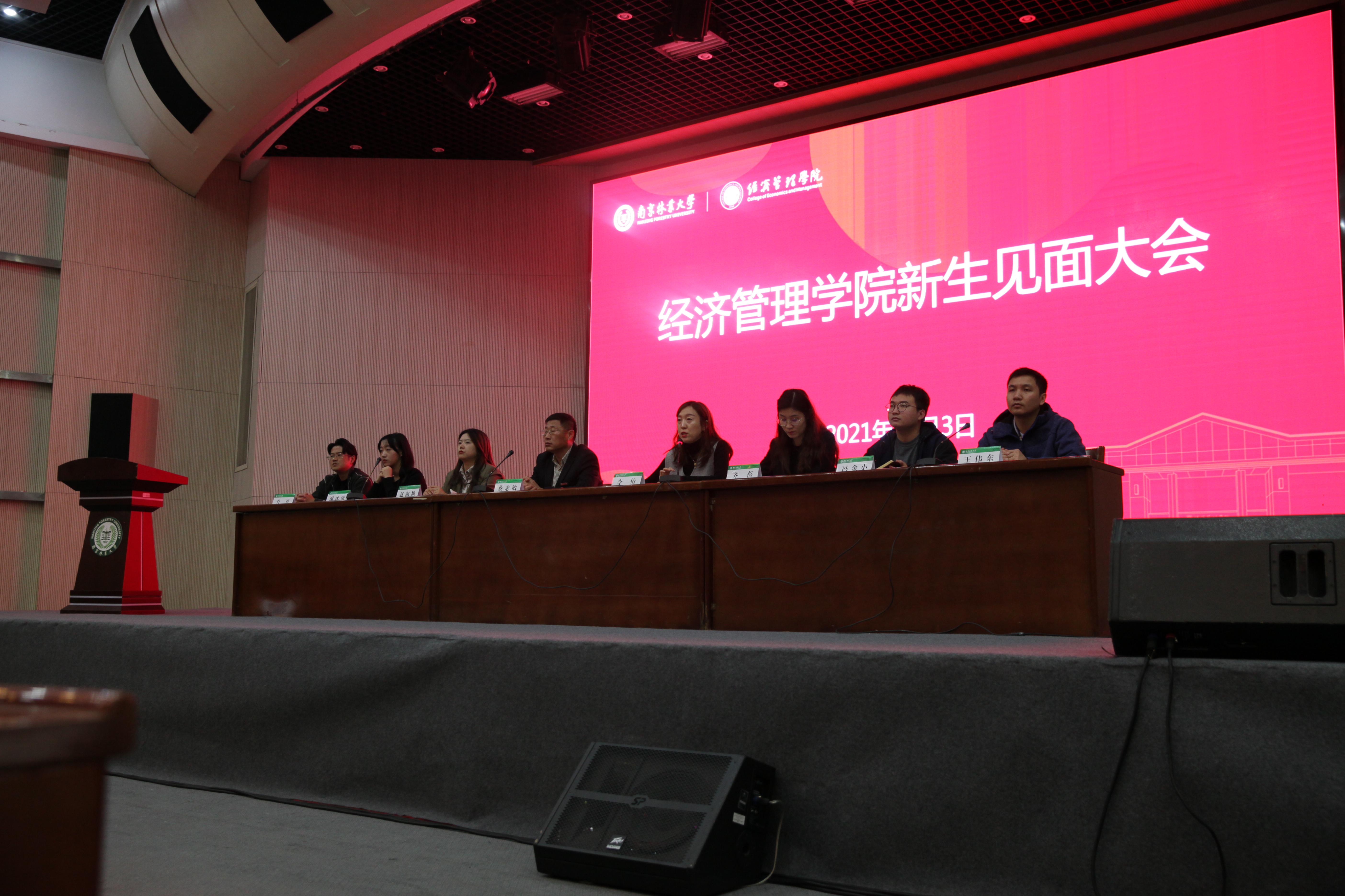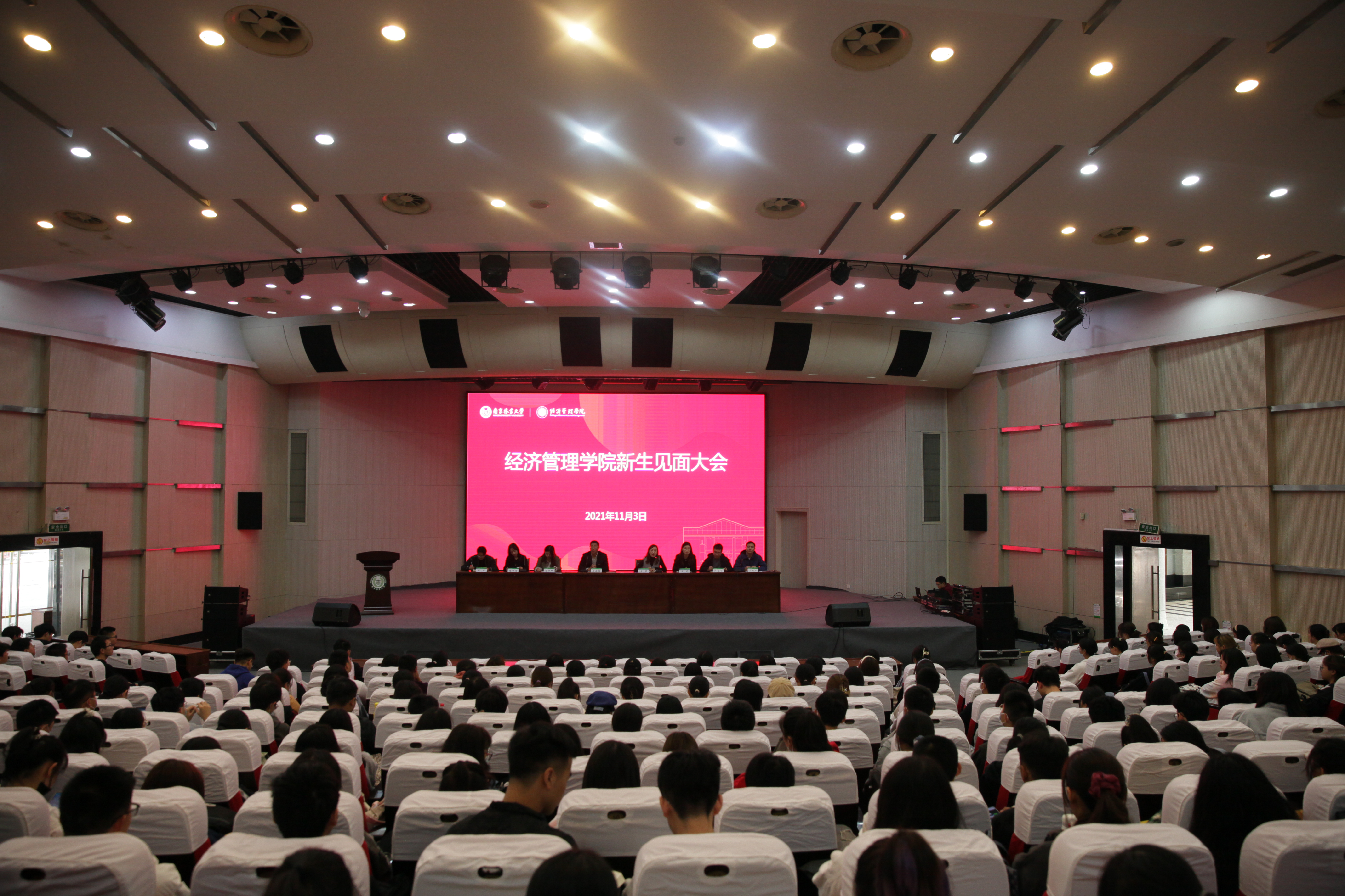 11月3日,经济管理学院2021级新生见面会在教五楼报告厅隆重举行。学院党委副书记、副院长蔡志敏、学院团委书记兼学工办主任李倩、组织员赵淑颖以及各年级辅导员齐蓓、谢冰清、冯金小、肖肖、王伟东出席了本次会议。会议由王伟东主持。