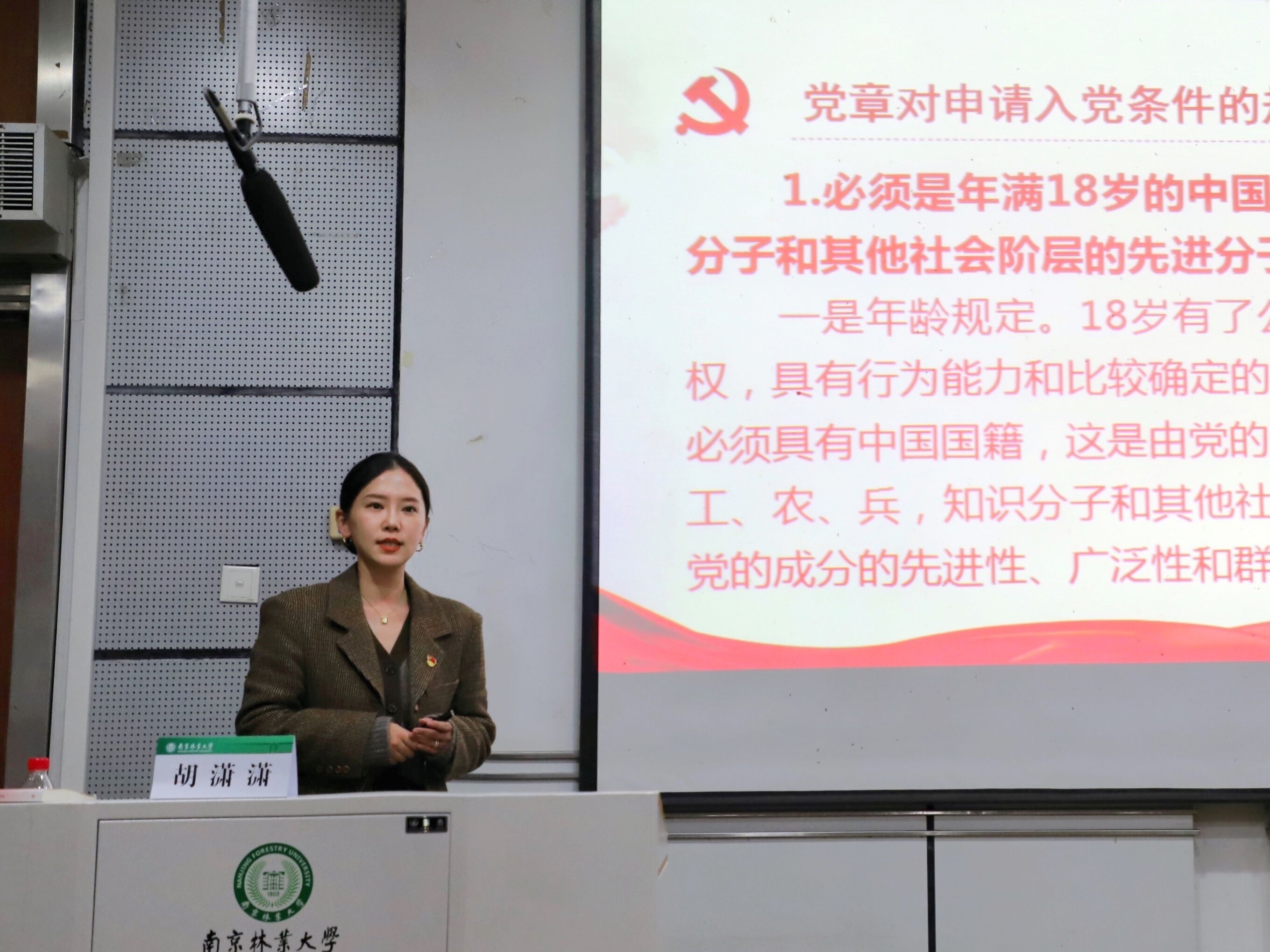 2021年11月30日下午,经济管理学院第44期积极分子培训班在教五楼阶梯教室二顺利举行。本次培训由南京林业大学党委组织部胡潇潇老师讲授题为“树立信念 明确目标 端正动机”的主题党课,经济管理学院党委组织员赵淑颖老师以及第44期入党积极分子参加了本次培训。