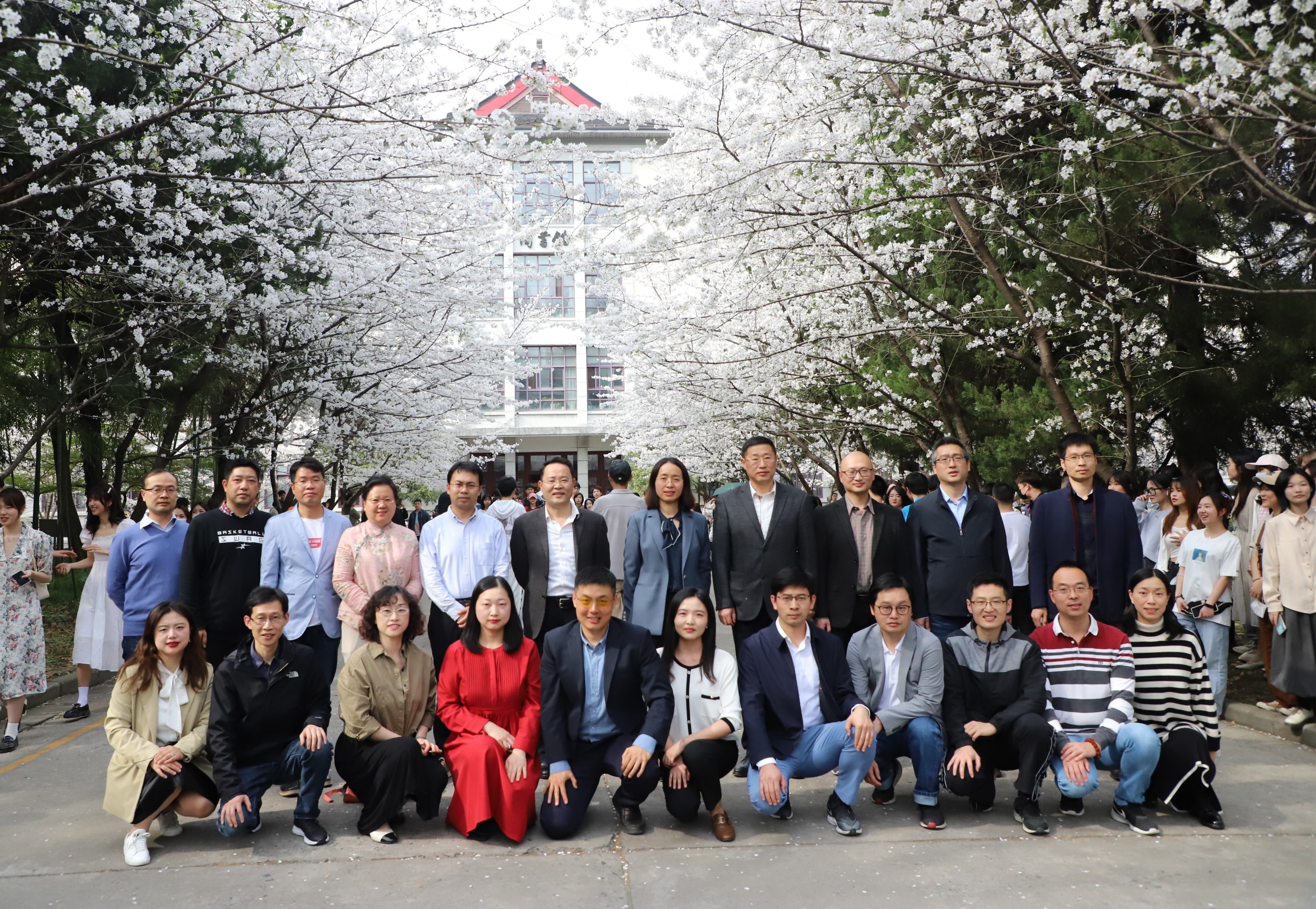 正值学校樱花盛开时期,学院领导与新一届系(中心)主任、支部书记一同在老图书馆前的樱花大道合影留恋,将最绚烂的笑容和最美的樱花珍藏于相片之中。