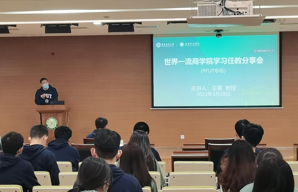 2022年3月28日下午5点,我院特邀香港中文大学王熹教授在线上举办了“我在世界一流商学院学习任教分享会”,为我院“一流大学人才托举班”(Promotion of First-class University Talents,简称PFUT)的同学分享经验、答疑解惑。本次会议设立了本部校区和淮安校区两个会场,通过云交流的形式保证两校区之间同步进行。出席本次会议的有学院党委副书记、副院长蔡志敏、PFUT提升班班主任谢冰清老师、基础班班主任冯金小老师。本次会议由该项目负责人齐蓓老师主持。