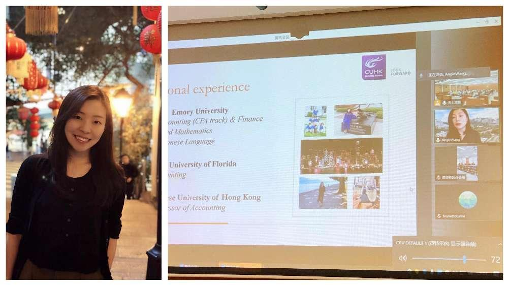 在分享环节,王熹教授向同学们系统介绍了自己从赴美留学到香港中文大学任教的学习经历和心路历程。她向同学们解读了国内外教学方式及教育环境的区别,建议同学们在本科阶段多尝试一些自己未踏入过的研究领域,寻找自己的兴趣点,同时也能拓展更广阔的知识;在大学毕业后如何做选择方面,王熹教授从读硕士、去工作、读博士三个方向逐一进行分析,希望同学们可以结合自己的实际情况客观选择;在如何为申请学校做准备方面,她从面试考官的角度,对同学们选择学校与专业、标准化考试(TOEFL/IELTS,GMAT/GRE)、推荐信、个人介绍进行了详细指导;同时,在同学们为硕士学习做哪些准备方面给出了四个建议,即学好英语、保持较高的GPA、拓宽视野和寻找一位可信任的mentor。