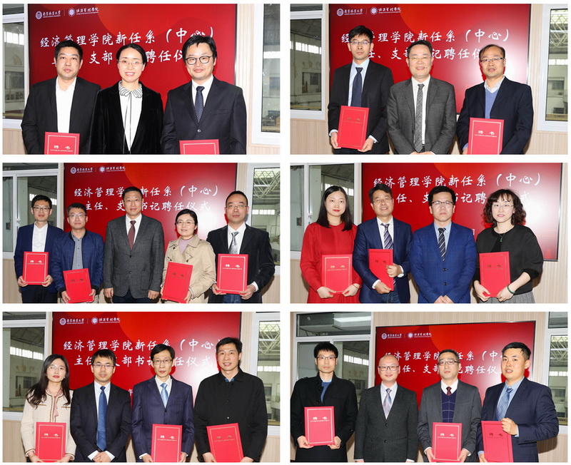 聘任仪式上,唐萍书记、杨红强院长、高强副院长、蔡志敏副书记、杨爱军副院长和邓德强副院长分别为实验中心和专业学位中心主任、农林经济系、工商管理系、管理科学与工程系、应用经济学系、会计学系主任及党支部书记和副主任颁发聘书。