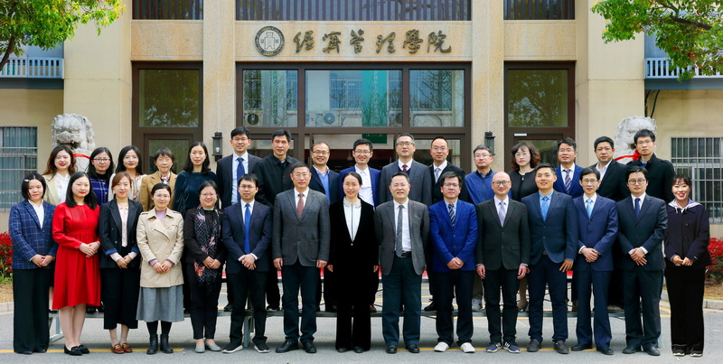 会前,学院领导班子全体成员、新一届系(中心)主任、支部书记、党政工团和MBA主要负责人在学院大门前合影留念。