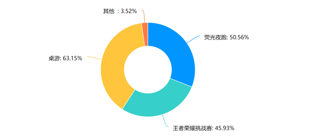 在针对趣味游戏型活动的调查当中,数据显示,有63.15%的同学倾向于桌游活动,如剧本杀、纸牌游戏等;有50.56%的同学希望参加荧光夜跑活动;有45.93%的同学希望开展王者荣耀挑战赛作为趣味游戏。在访谈中发现,我院学生在选择室内放松方式的同时,也把室外活动作为一种兴趣爱好。
