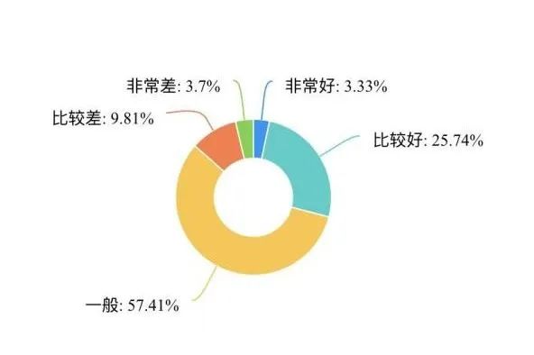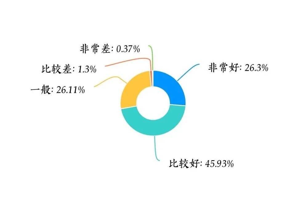 对于经管院学生会人员的态度,有26.30%的同学表示“非常好”;有45.93%的同学表示“比较好”;有26.11%的同学表示一般;只有1.30%和0.37%的同学表示比较差和非常差。从访谈中得知,学院同学对经管院本届学生会成员的态度总体是满意的,但还有可提高的空间,比如礼仪等方面。