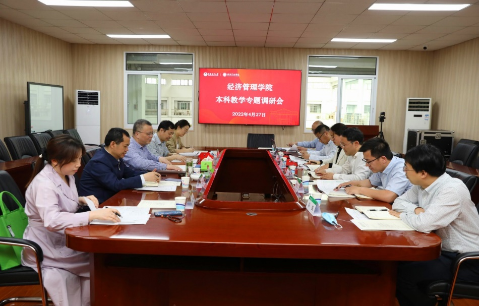4月27日下午,副校长勇强率队专题调研经管学院本科教学和专业建设工作,教务处处长王立彬、教学评估办公室主任/高等教育研究所所长周统建、教务处副处长姜琪、教学评估办公室副主任/高等教育研究所副所长刘奕琳共同参加调研会议。经济管理学院领导班子全体成员参加会议,会议由学院党委书记唐萍主持。