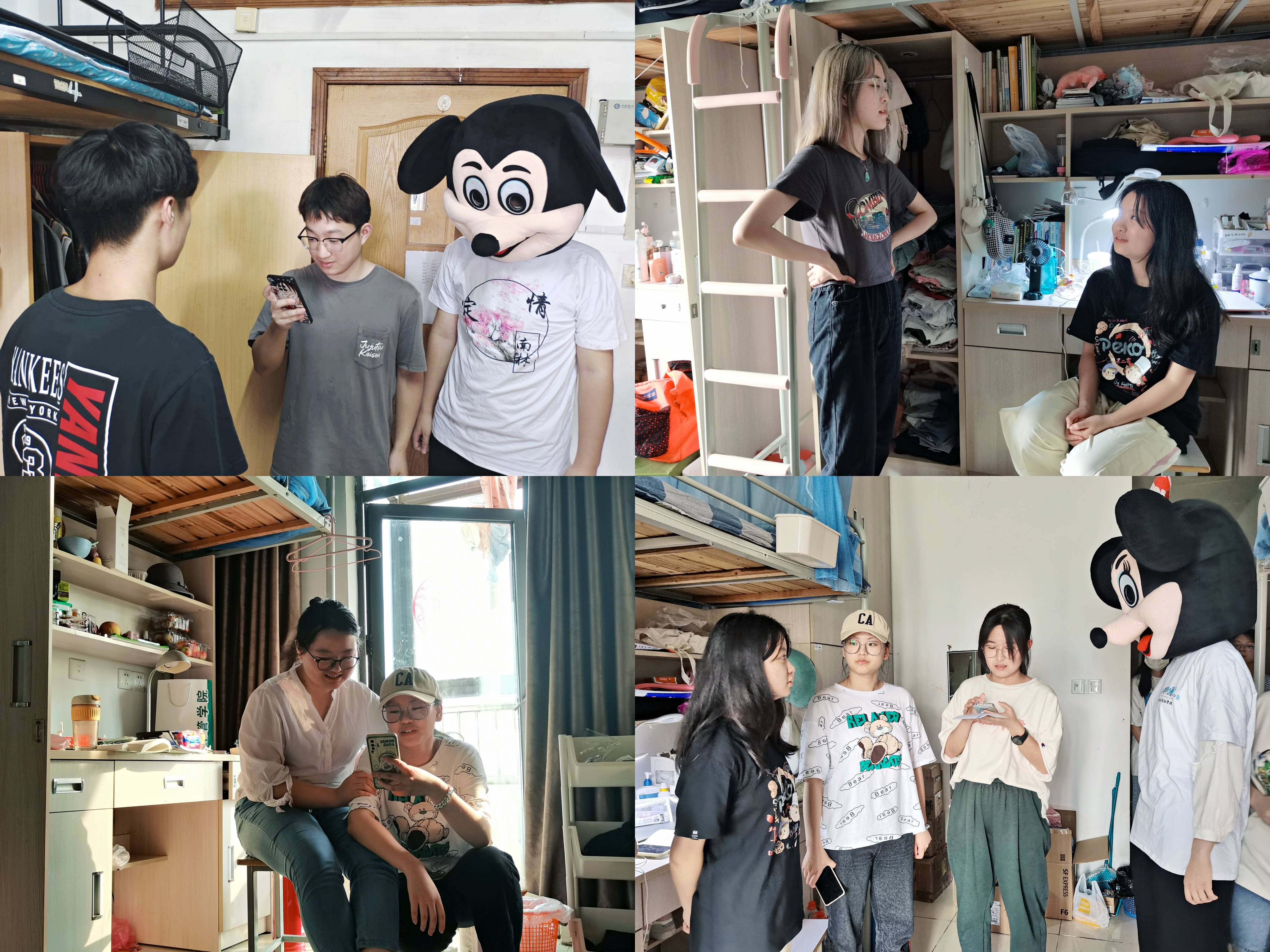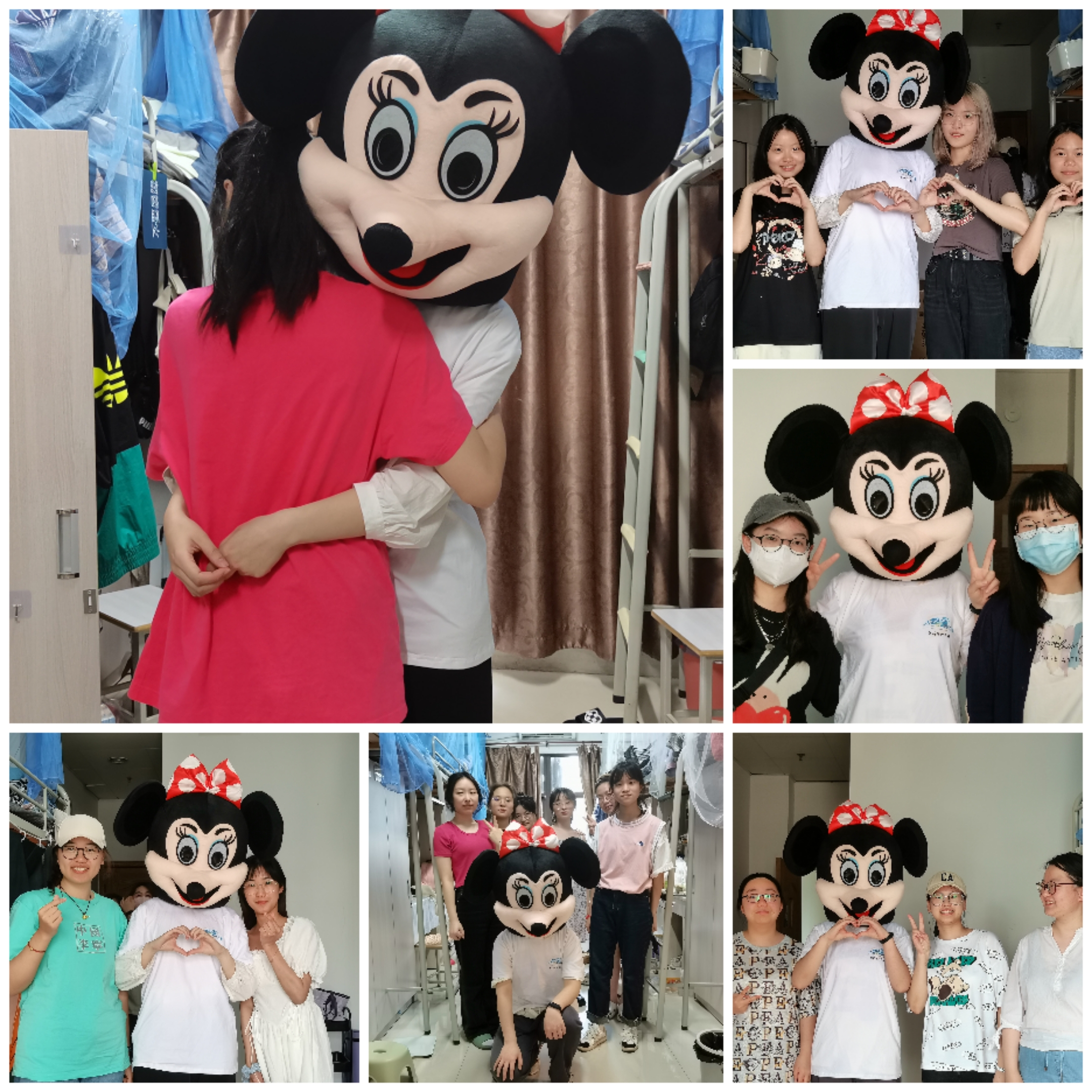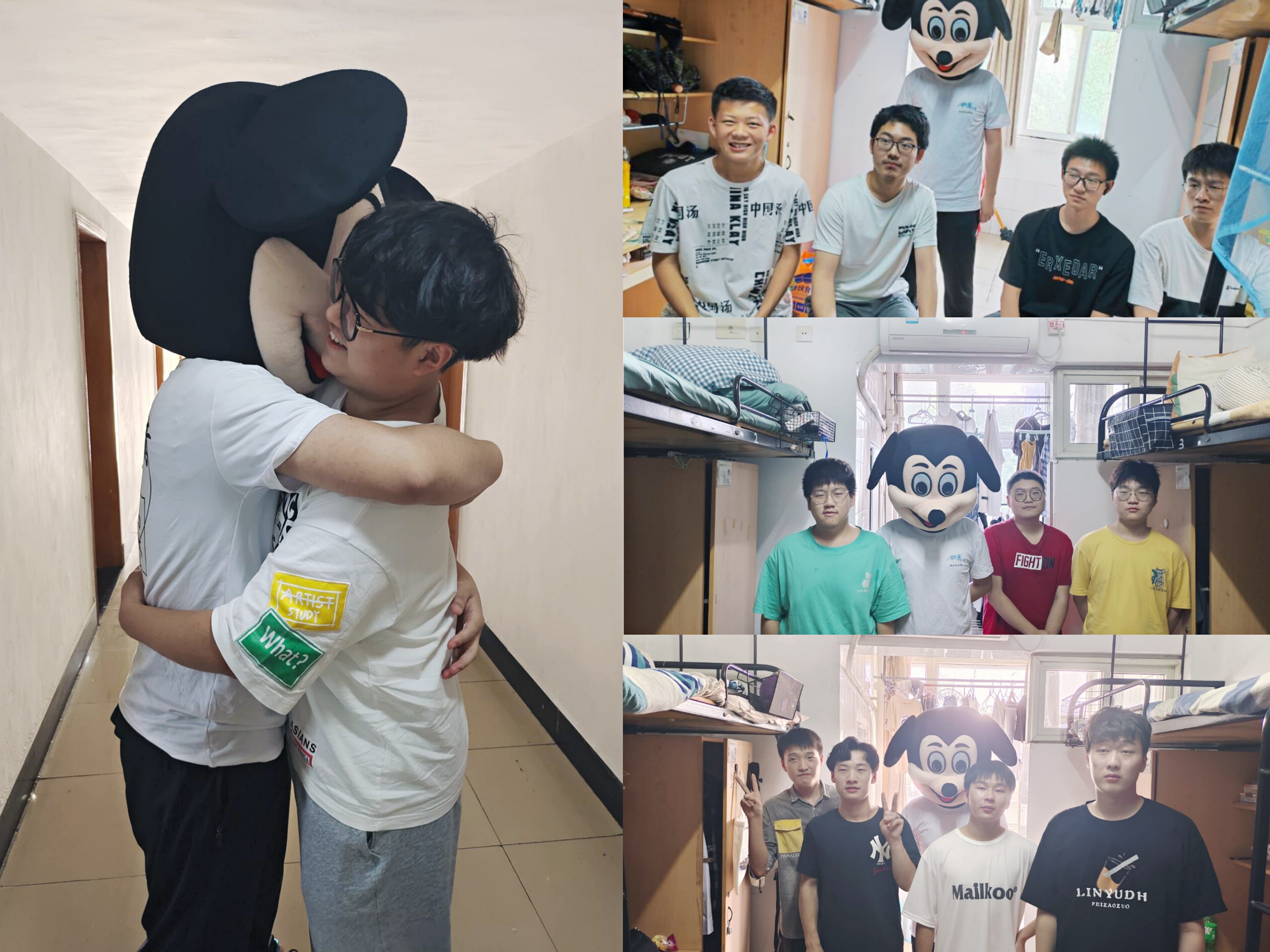 在“爱的拥抱”环节,可爱的“米奇”“米妮”走进宿舍,给同学们一个大大的“惊喜”,唤醒大家对温情的感怀,敞开心扉,本着一颗真挚之心去相互了解,相互包容,消除冷漠,传达“拥抱身边温暖,传递人心有爱”的理念。