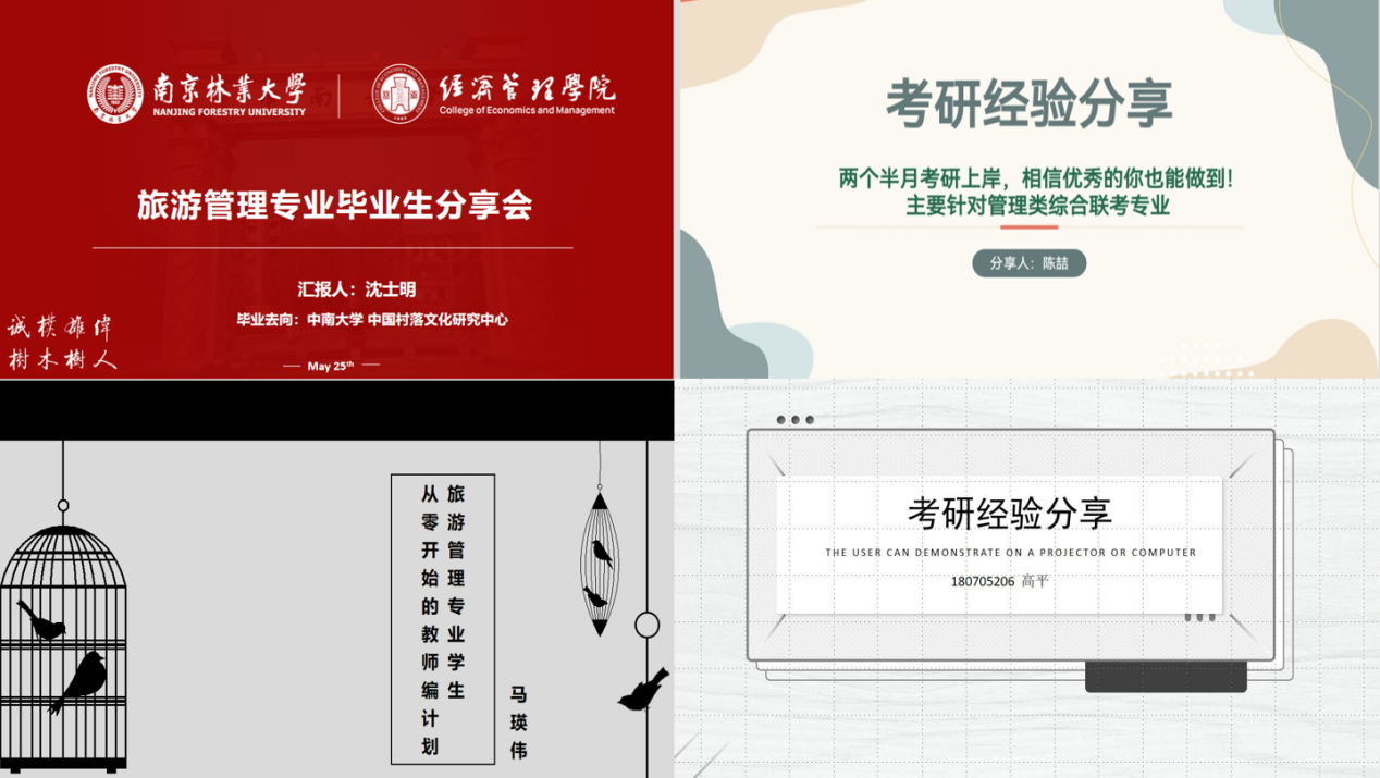 5月25日通过线上方式开展了“旅游管理就业升学经验交流会”,5位2022届学生分别就保研、考研、考编、企业就业等相关问题,向大三及部分大一大二本科生,进行经验分享及交流,分享内容丰富多彩,与会同学收获颇丰。