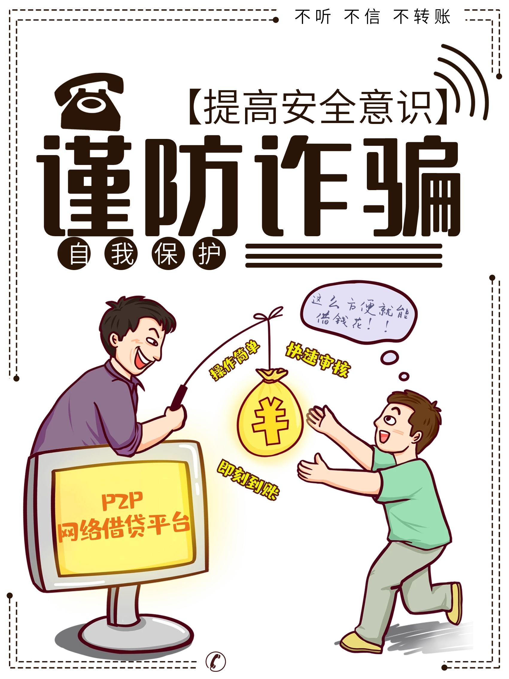 图片展采用传阅的组织形式,以“电信诈骗”、“金融诈骗”和“网络诈骗”三种常见诈骗类型为主要题材,精心选取了20张惟妙惟肖的漫画,生动呈现了诈骗的常见手法以及制作了防范诈骗的小贴士。选取的图片排序构思巧妙、特点鲜明:如重介绍电信诈骗的“花式外衣”、深入解析网络诈骗“无中生有”的惯用伎俩、特别强调了金融诈骗的“致命诱惑”;也选取图片主要宣传了“国家反诈中心”APP和“金钟罩”APP,还贴心地附上了玄武公安的电话。本次图片展旨在提醒同学们打起十二分的警惕,自觉抵制不良诱惑,识破诈骗陷阱,成为真正意义上“心明眼亮”的大学生。