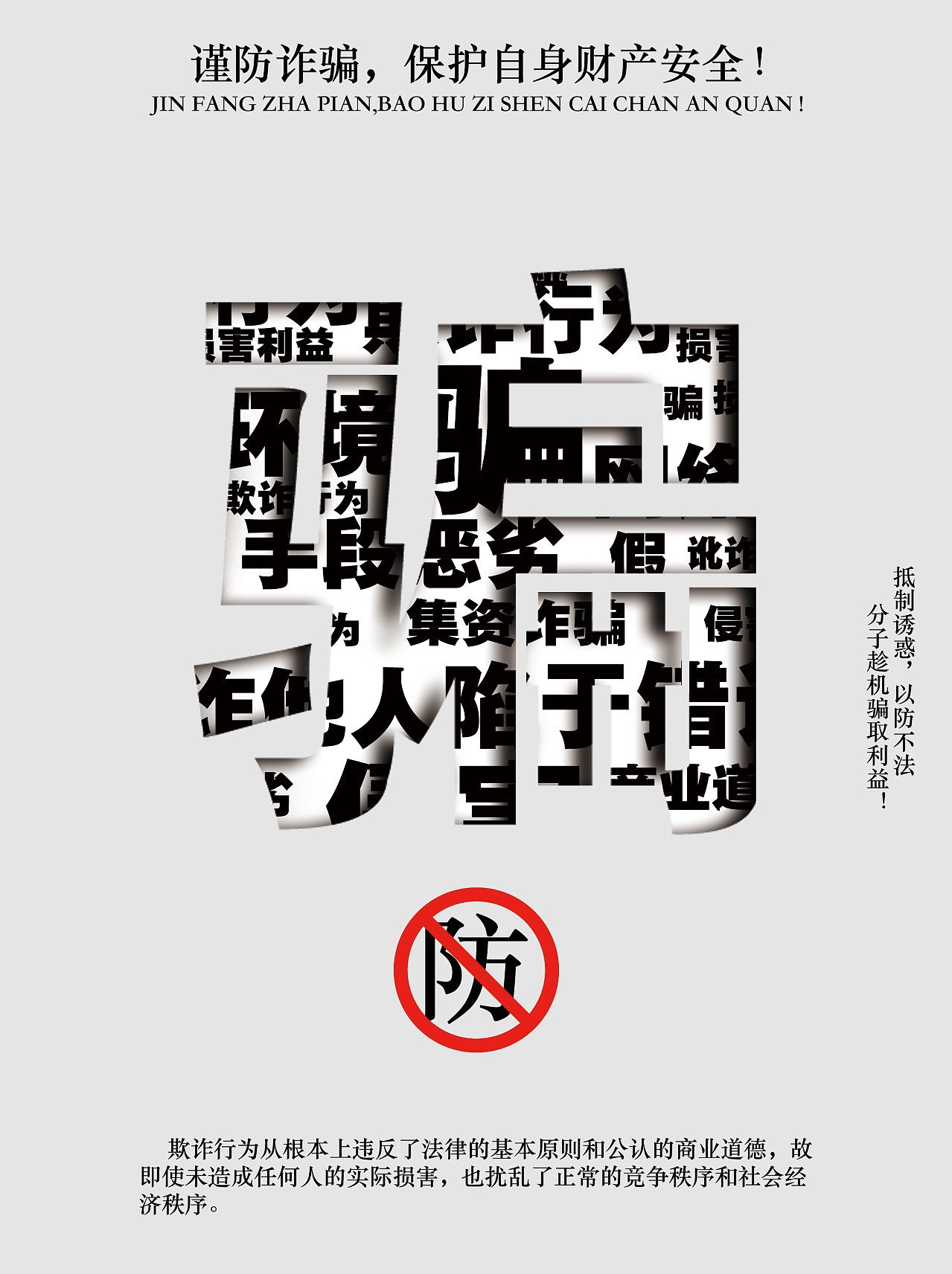 今天受到了很多的启发,学到了很多知识,在我们的身边,总是存在着一些骗局,而我们每个人都应该是精明的侦探,仔细地观察,有防范意识,所谓害人之心不可有,防人之心不可无。对于那些骗局,我们应该加强“抵抗力”,不要去相信占便宜的事,现在骗局越来越多,越来越复杂,我们也应该将自己的思维意识升级,保护自己的钱袋子,加强防范,避免受骗!(200550201陈思桦)