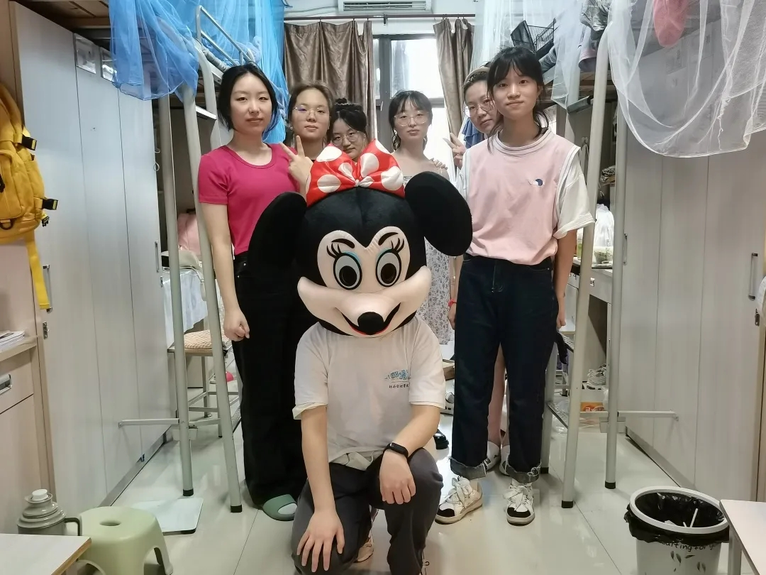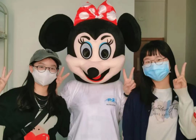 在“爱的拥抱”环节,我们可爱的“米奇”“米妮”率先走进宿舍,给同学们一个大大的拥抱,通过拥抱的方式打破人与人之间的隔阂、传递温暖,通过寄托心愿,拉近心的距离、重温人与人之间的信任、亲切。