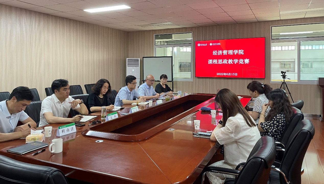 参赛老师首先以说课的形式,汇报了如何深入发掘和提炼课程中所蕴含的思政要素和德育功能,如何使之融入课堂教学环节。接着又进行了1个教学节段现场讲授展示。评委们针对每位参赛教师的课程思政说课和课堂展示进行了现场点评,他们一致认为选手们准备充分,教学设计深入发掘和提炼了专业课程中所蕴含的思政要素,课程思政元素融入自然,专业知识讲授与思政育人效果良好,全面展示了各自的教学风采。经过专家评审,来自会计学系的吴凡老师、应用经济系的耿利敏老师和农林经济系的许玉韫老师分别荣获一、二、三等奖。