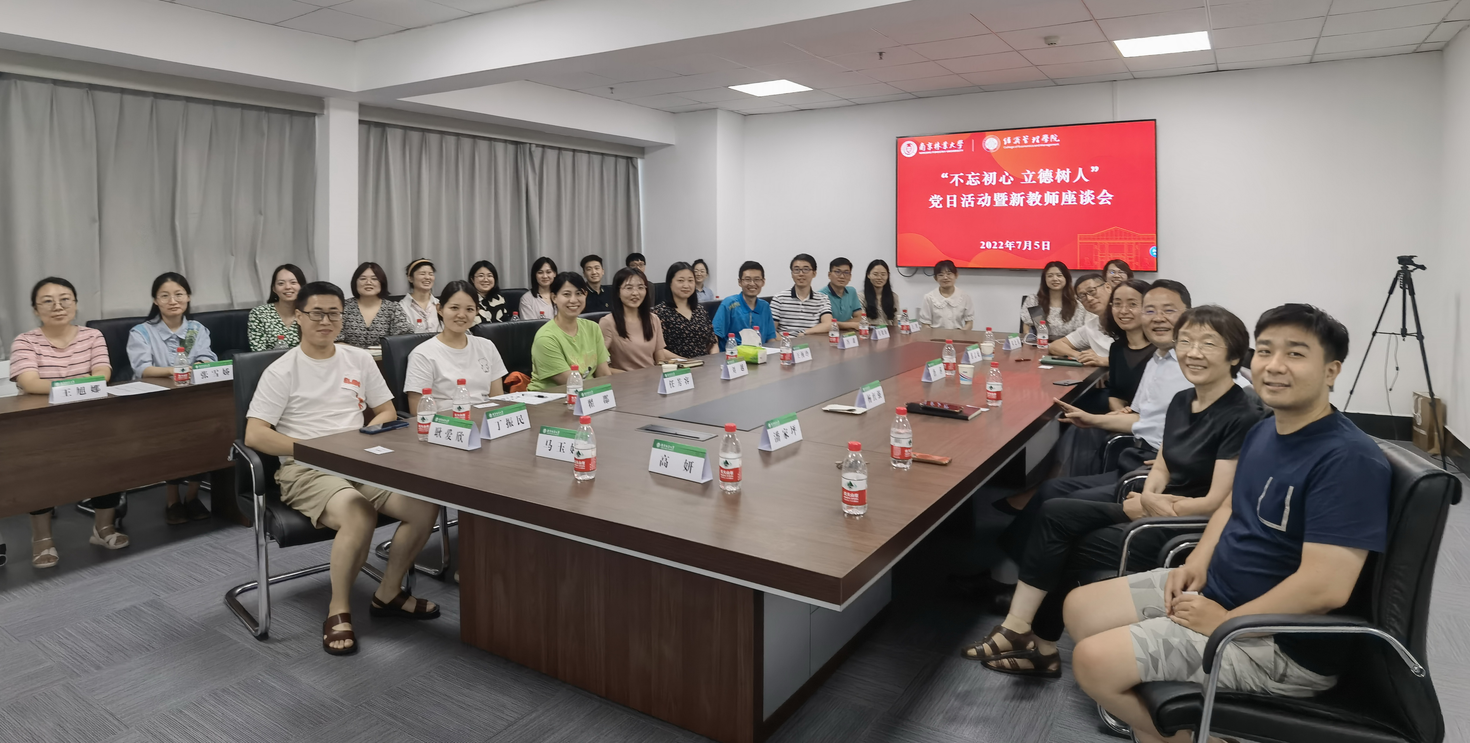 7月5日下午,经济管理学院“不忘初心 立德树人”党日活动暨新教师座谈会在南林大厦6楼MBA报告厅召开。学院领导唐萍、杨红强、蔡志敏、高强、邓德强和学院2021年以来新入职的教师参加座谈。学院党委书记唐萍主持会议。