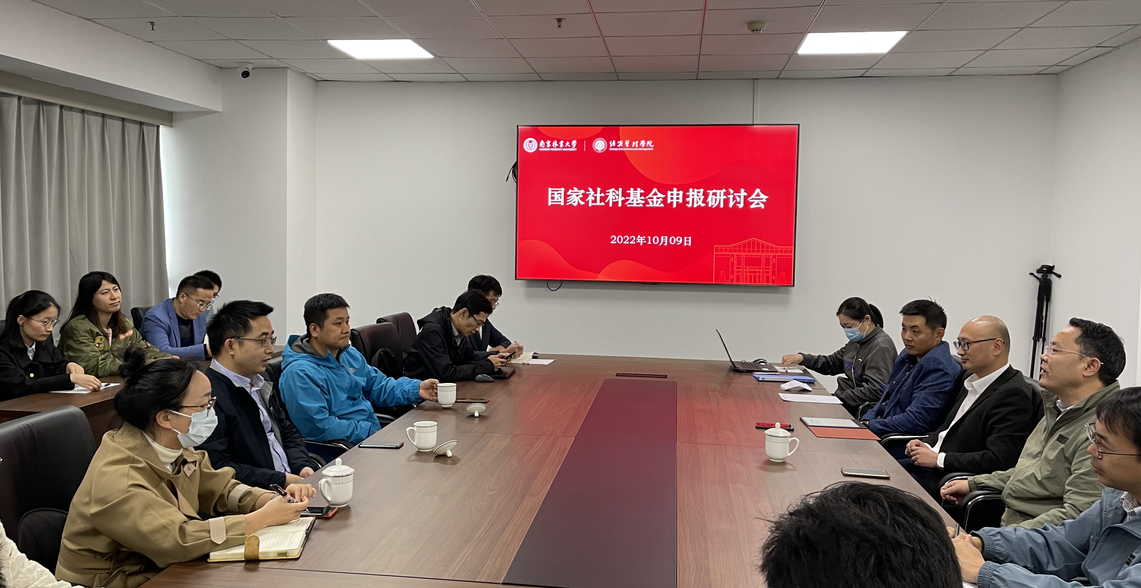 10月9日下午15:30,在南林大厦六楼MBA会议室,国家社科重大项目首席专家权小锋教授、国家优青学者王群伟教授应邀来学院交流分享国家社科基金项目申报经验,杨红强院长、高强副院长、邓德强副院长及20余名中青年骨干教师参加本次研讨活动。