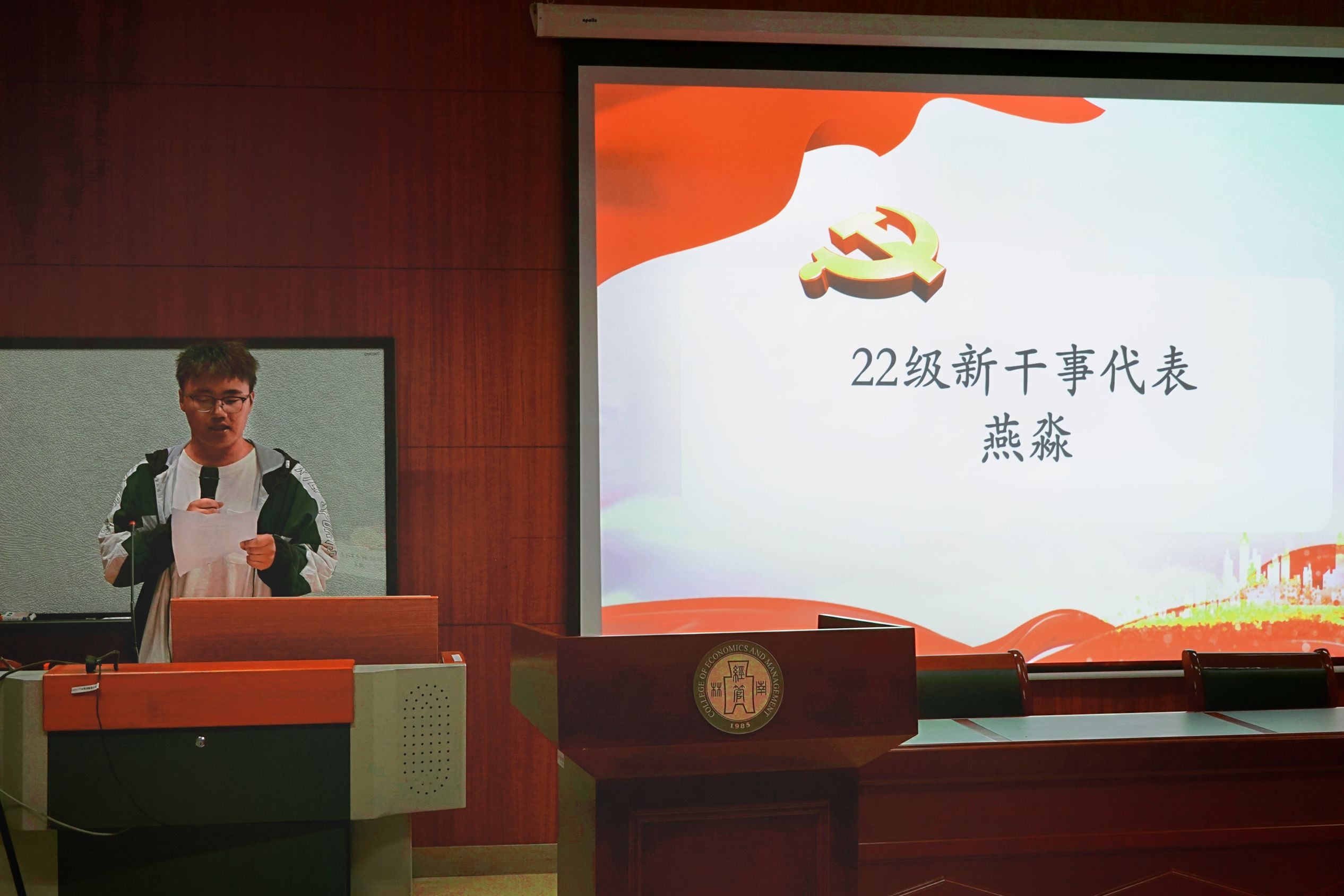 最后,新干事代表燕淼进行发言,他表示,在未来他定会勤于学习,自觉锤炼,积累经验,不断提升工作能力,在实践中经受锻炼,努力完成每一项工作任务。
