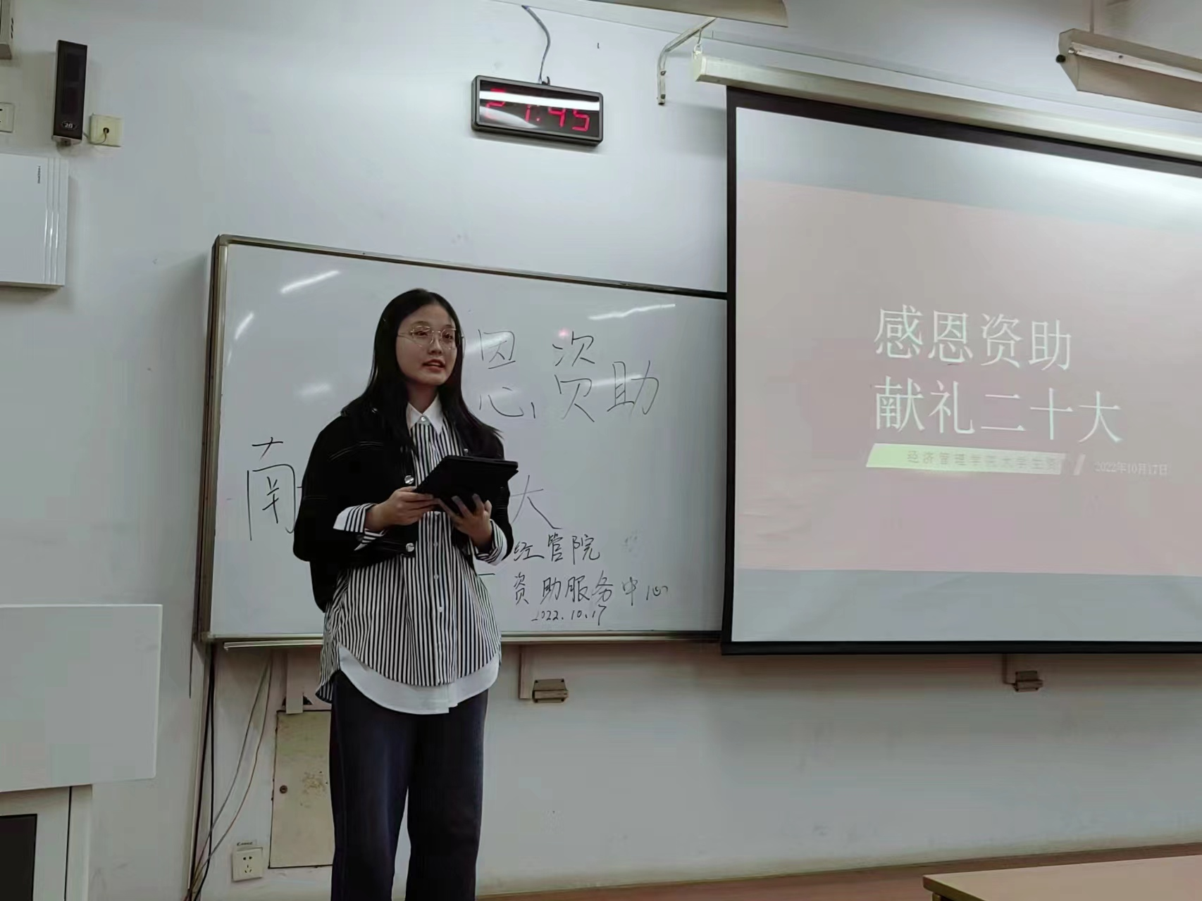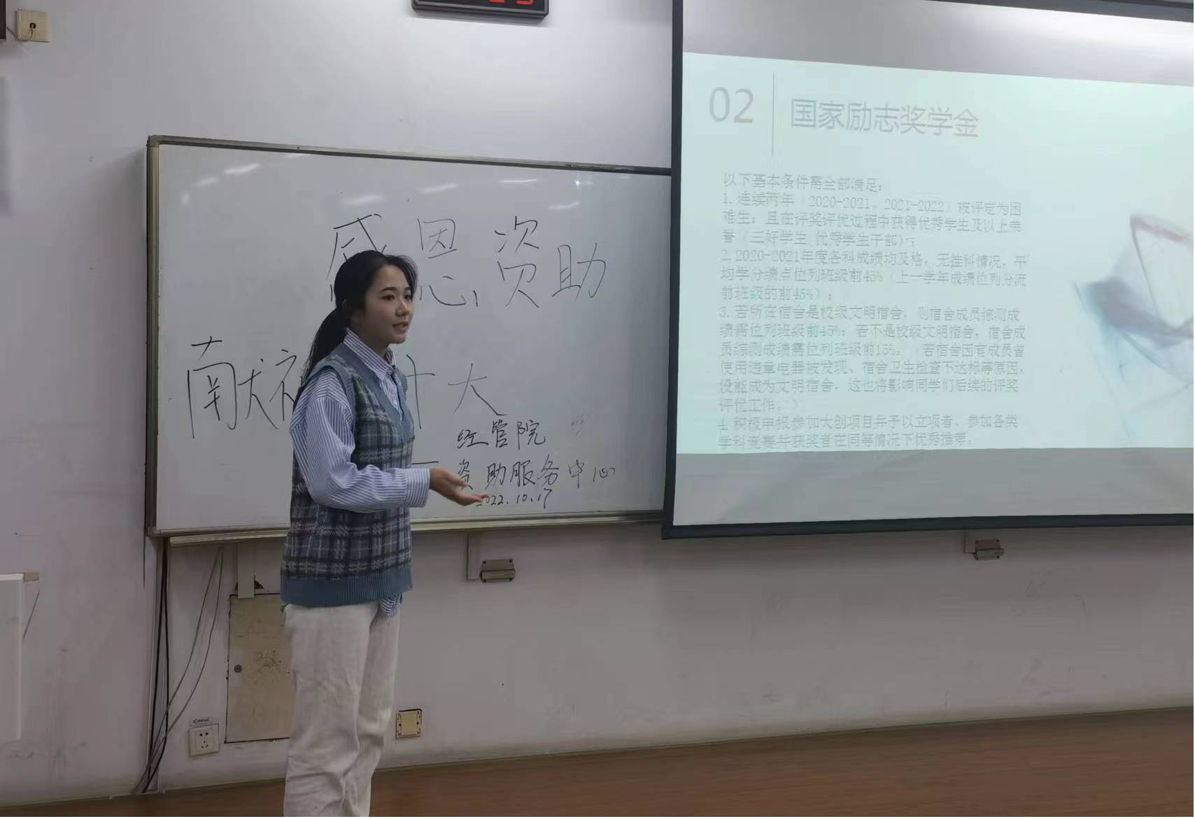 为进一步增强资助政策宣传力度,让学院2022级新生了解国家、社会和学校相关资助政策,以及鼓励广大学生分享家乡近些年发展成就,以感恩奋进之志献礼党的二十大,学院资助服务中心于10月17日在50317教室举办“感恩资助,献礼党的二十大”主题活动。