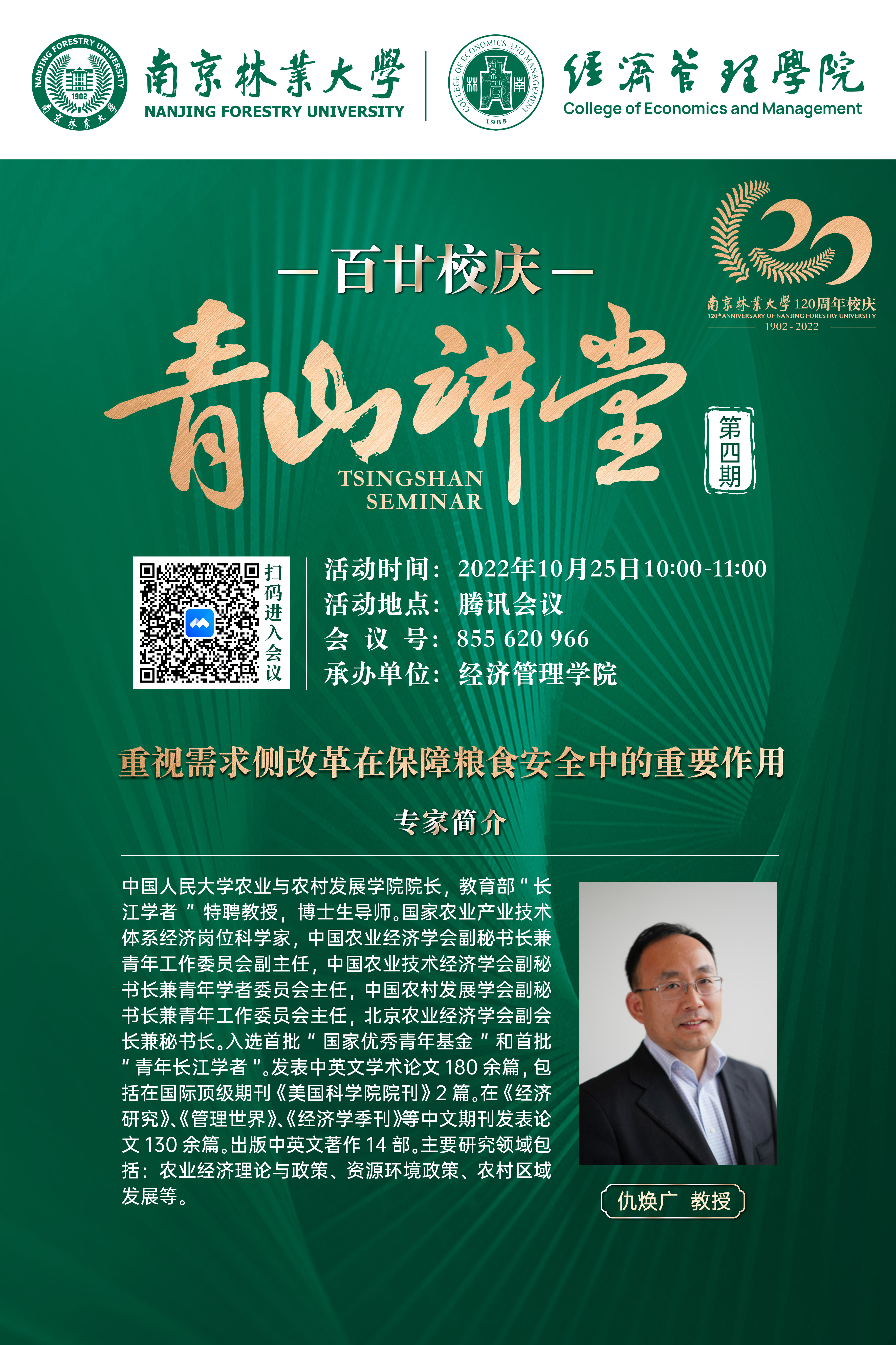 百廿校庆--青山讲堂 第四期:仇焕广 教授(中国人民大学)