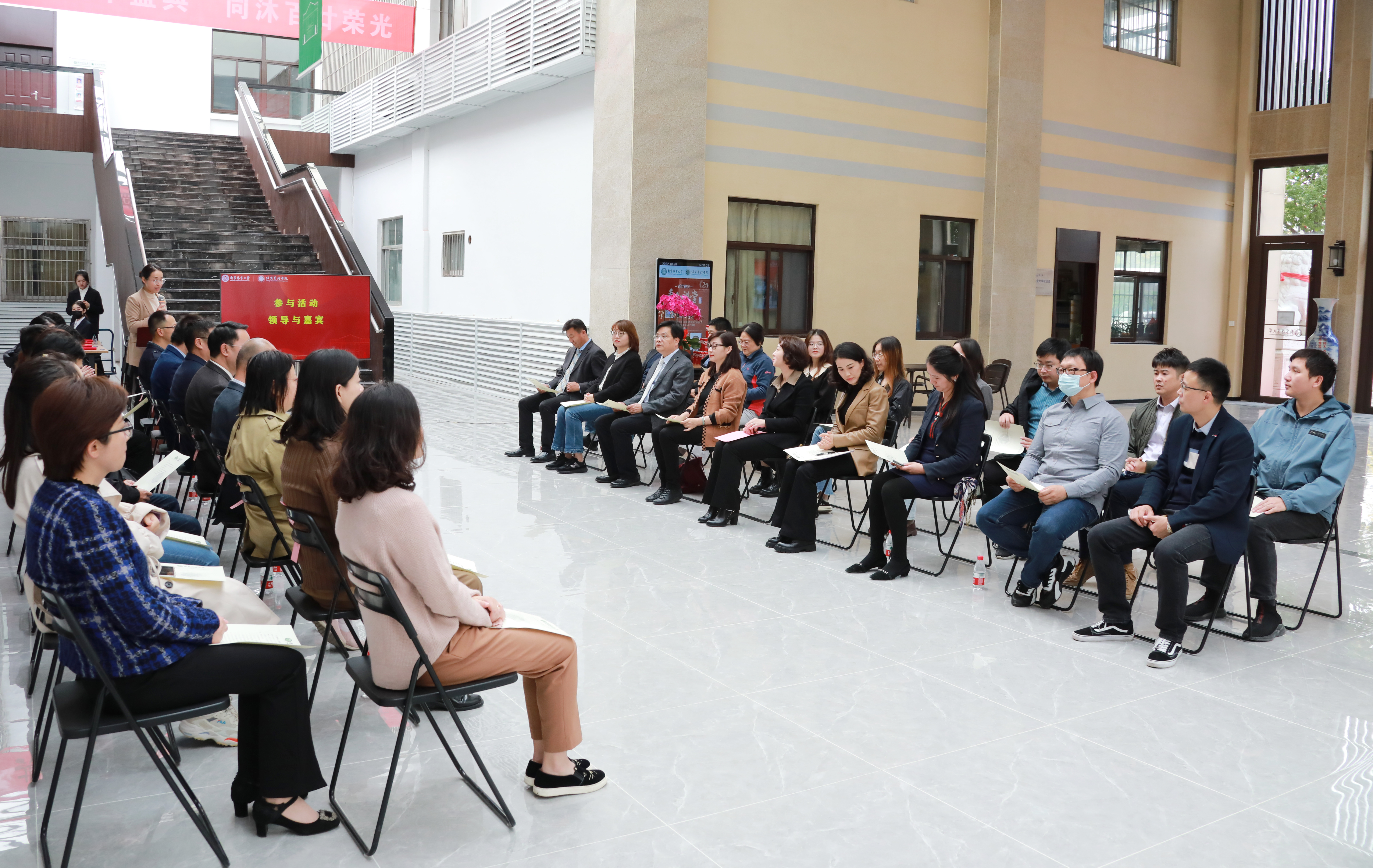 共襄双甲盛典,同沐百廿荣光。2022年10月28日,学院在教11楼10号门厅举行经管校友修缮门厅完竣暨百廿厅捐赠仪式。副校长缪子梅,组织部部长、校庆办公室主任赵晶,宣传部部长农春仕,国资处处长吴菱蓉、校友办负责人、发展基金会秘书处负责人刘子超,后勤管理处副处长、后勤服务总公司副总经理毛洪贲,学院校友代表陈艾芳、蔡英珠、唐千里、李炜,学院领导唐萍、杨红强、蔡志敏、杨爱军、邓德强以及院办、MBA办公室、各系教师和学生代表参加此次活动。活动由学院党委书记唐萍主持。