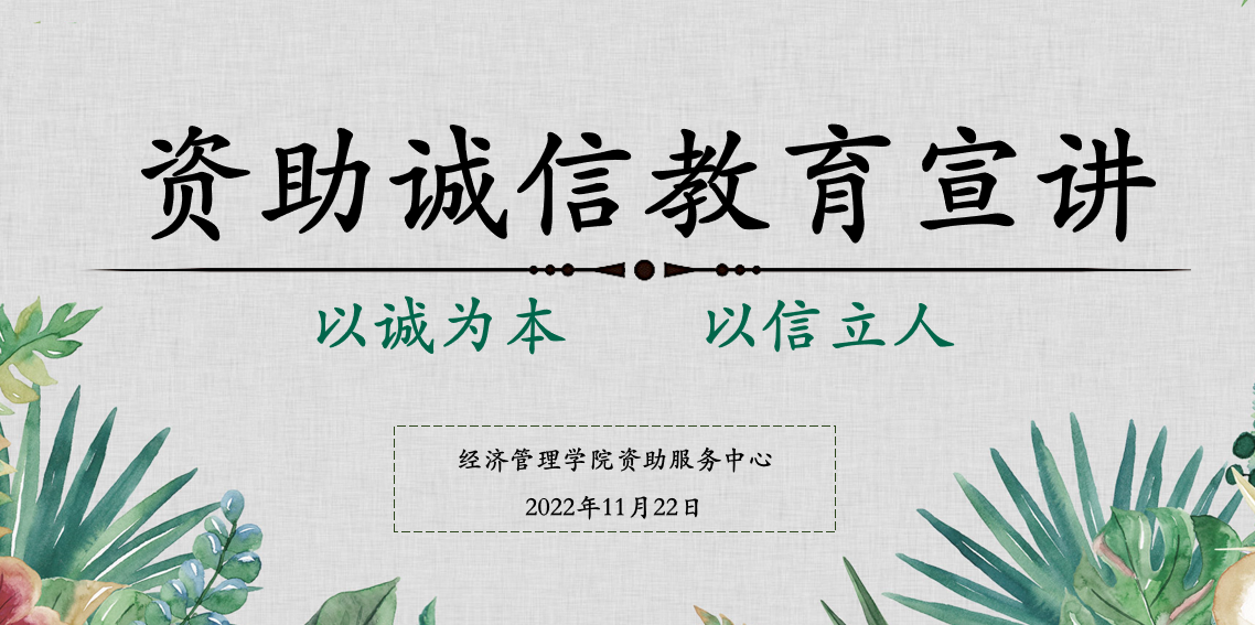 为加深各年级受助学生诚信观念,引导学生自立自强,树立正确的消费观与价值观,11月22日晚,经济管理学院资助服务中心召开了诚信教育主题线上宣讲会,全院近两百名受助学生参与本次宣讲会。本次宣讲会由学院资助服务中心指导老师陈鸣晖主持,2019级辅导员院冯金小老师从“困难生日常行为规范”与“以诚为本,以信立人”两个方面向学院受助学生作资助政策和教育宣讲。