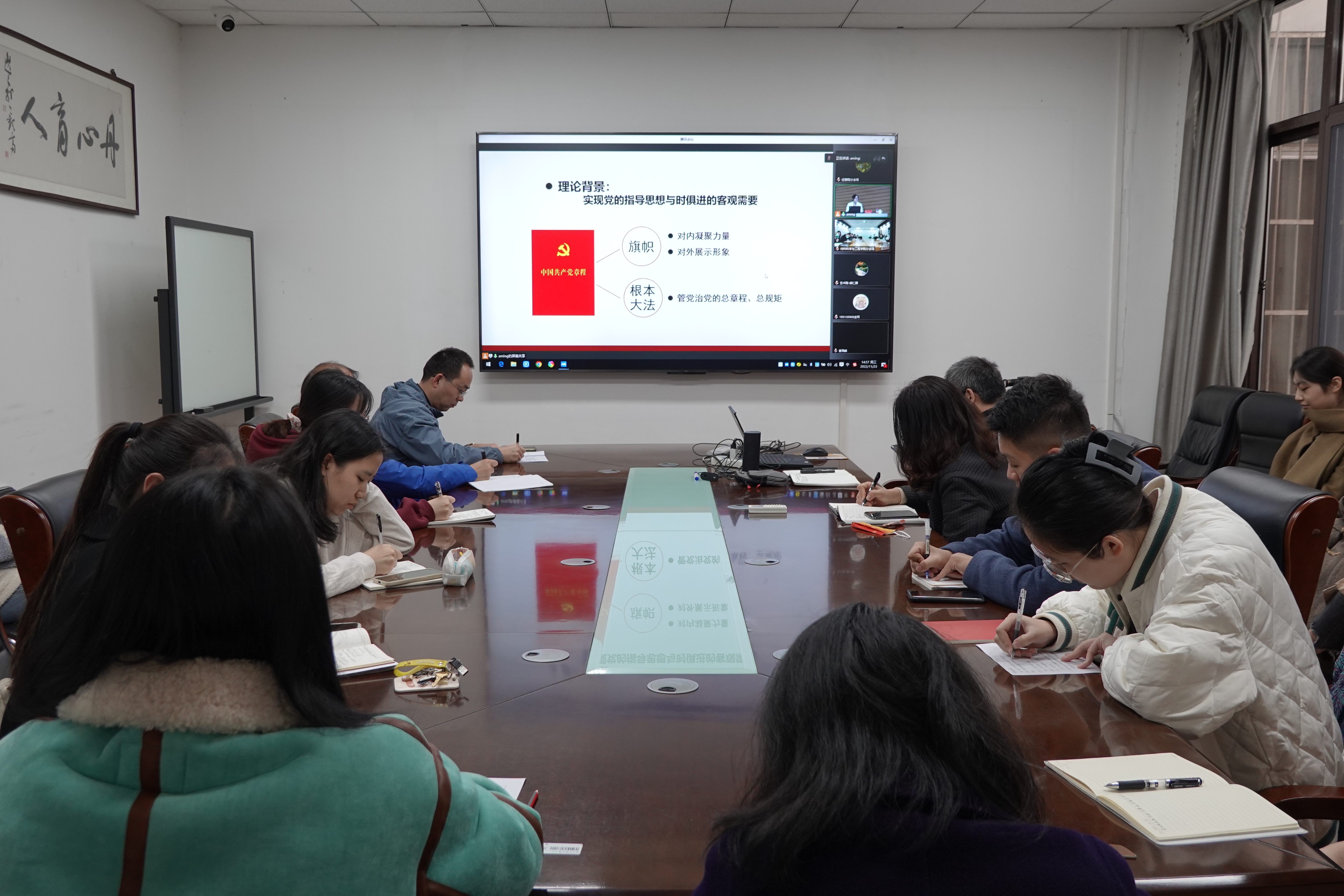 为增强党章意识,凝聚思想共识,增添前行动力,2022年11月23日下午,校党委组织部组织全校党支部书记、党委组织员学习《中国共产党章程》(修正案),省委党校党史党建教研部副教授谌玉洁受邀作专题培训讲座。根据疫情防控的要求,本次会议采用线上和线下相结合的方式召开。学院2名师生代表参加新图书馆8B204举行的线下讲座,其余支部书记于经管院C248线下分会场进行集中学习。学院分会场学习由院党委书记唐萍主持。