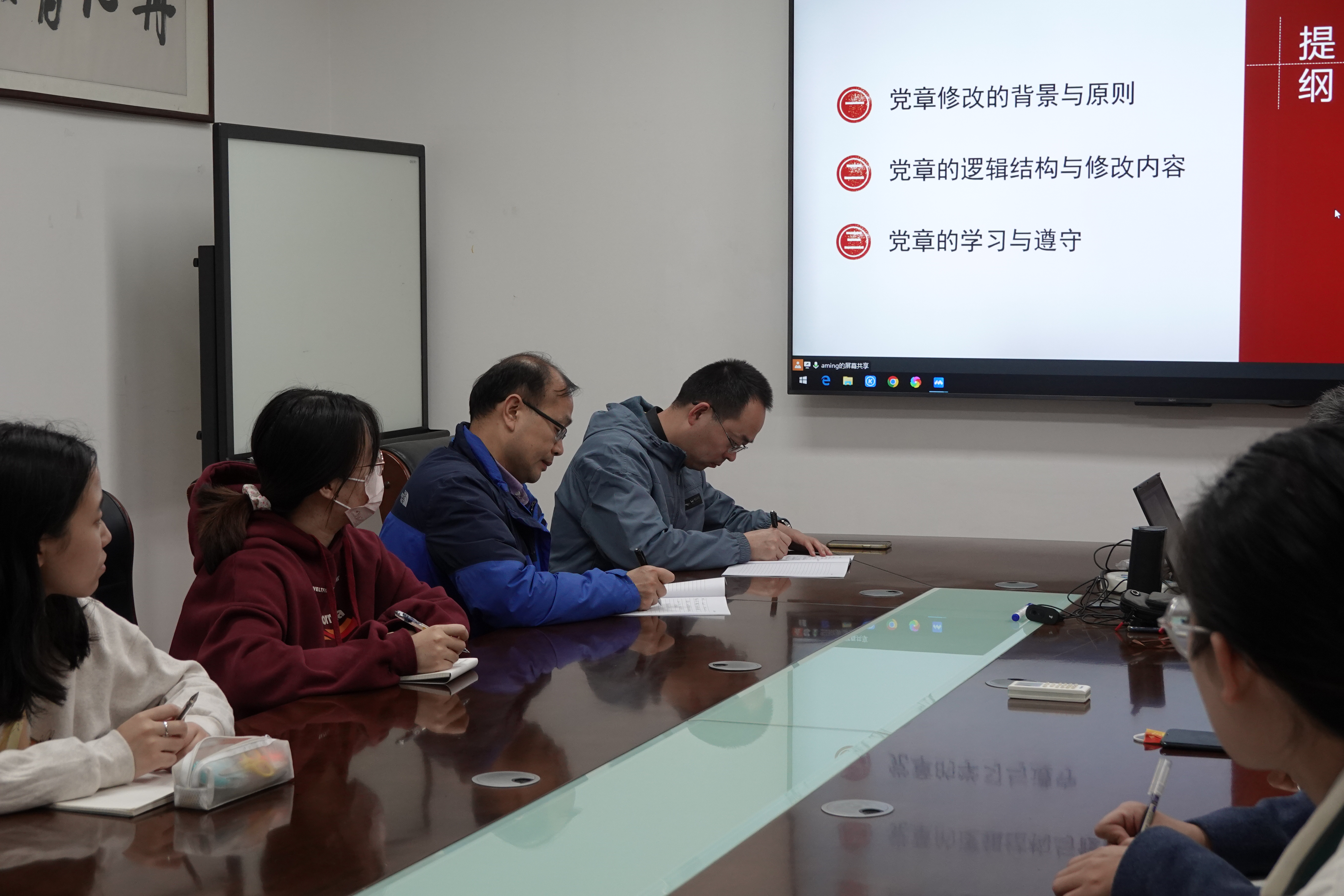 最后,谌老师对到场学习的各位书记、各位老师以及全体党员提出几点期望,希望党员同志们能够把学习党章与学习党的二十大精神有机结合起来,始终把学习党章、遵守党章、贯彻党章、维护党章作为一项重大的政治任务,常抓不懈。她强调,在场党员们要认真学习党章,做认真学习党章的优秀示范者,做到先学一步,深学一步,都要发扬团结、学习、创新、超越的精神,扎扎实实做好本职工作,为科技的进一步发展作出应有的贡献。