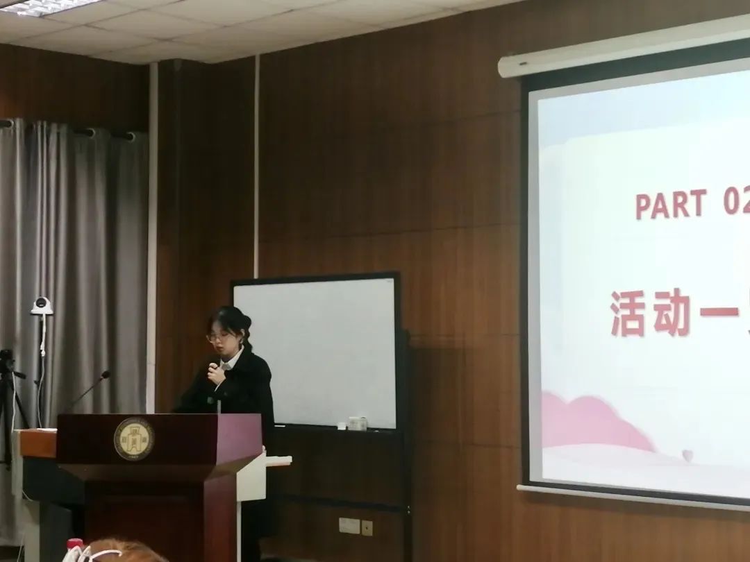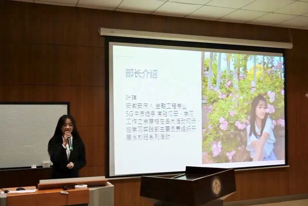 叶琪同学代表学习实践部进行发言。她指出,学习实践部是一个温暖的大家庭,同学们都能够做到“保持炽热的心”,努力工作,恪尽职守。随后,她展示了学习实践部的各项活动成果,并对未来的工作计划进行了介绍。