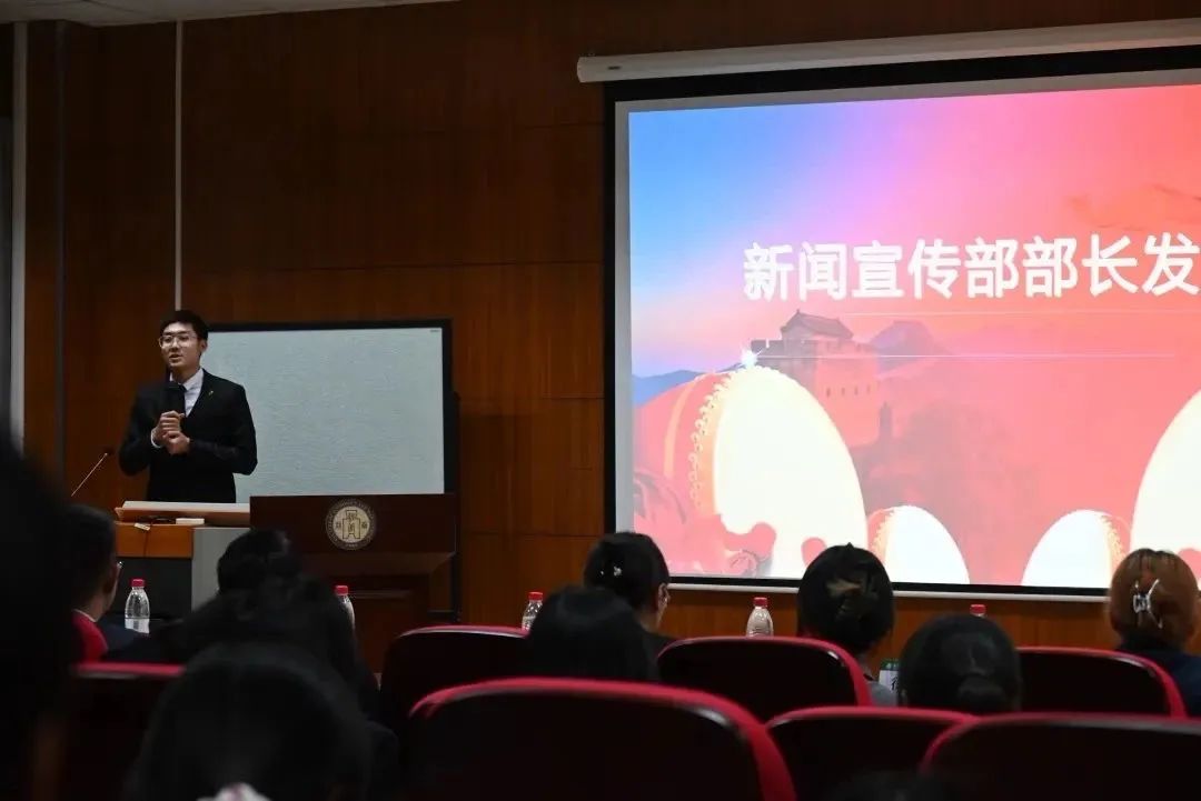 肖尧同学代表新闻宣传部进行发言。他表示,新闻宣传在校园通知传递、舆论和文化建设、活动跟踪报道等方面的重要意义,新宣部使命光荣,责任重大,是发布、沟通、传递信息的窗户。最后,他将部门阶段性工作开展的实效及成果进行了展示和介绍。