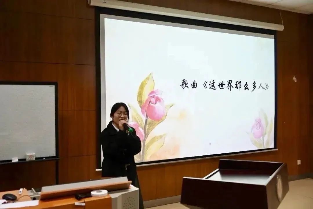 会议过半,由方媛媛同学带来一首《这世界那么多人》,优美的旋律和动听的歌声回荡在会场,温柔中又沉淀着激昂。