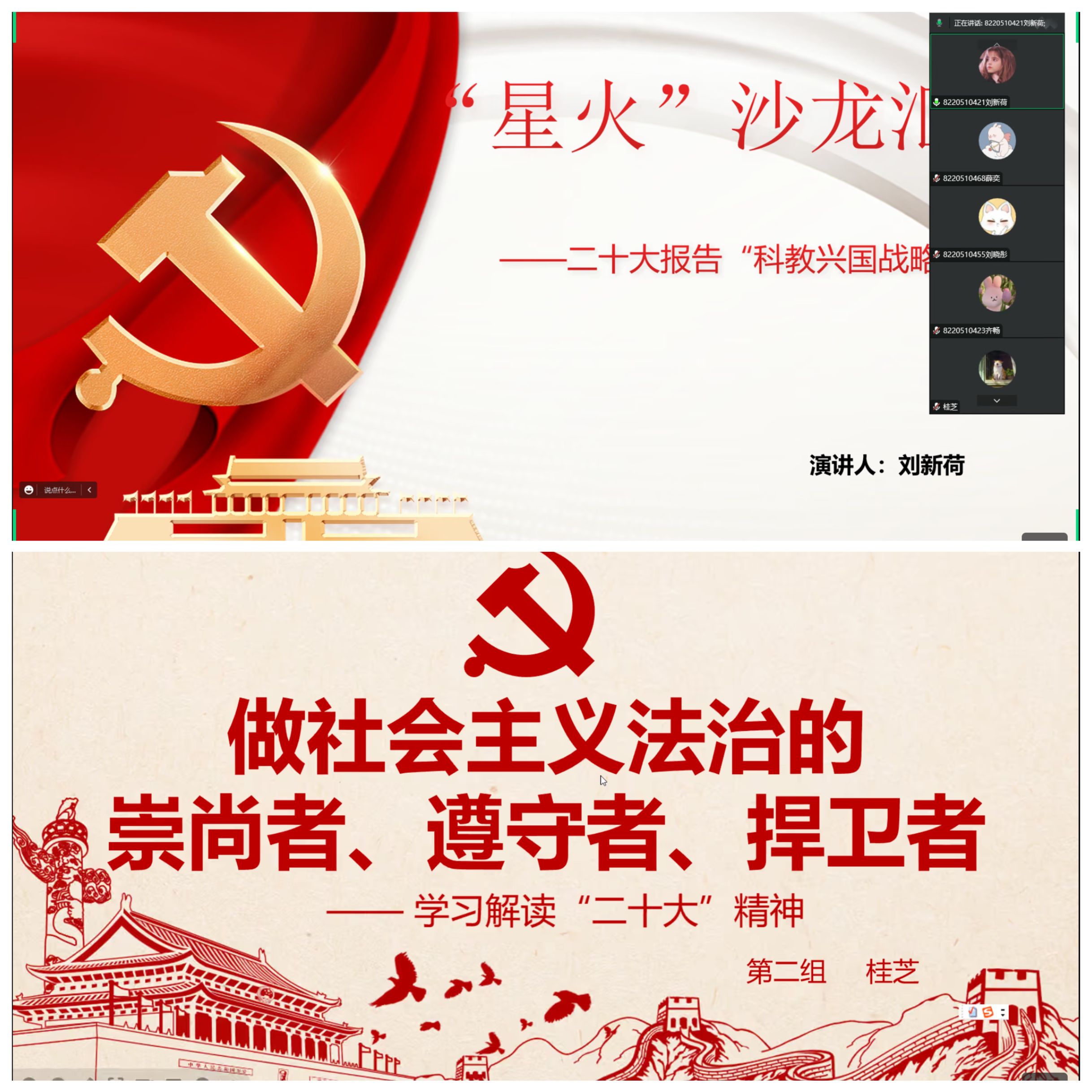 在27日的汇报分享中,各党员小组从观看影视作品、人才强国、弘扬法治精神、职业分享、文化自信和自身学习心得等多个角度切入,充分解读了二十大精神。