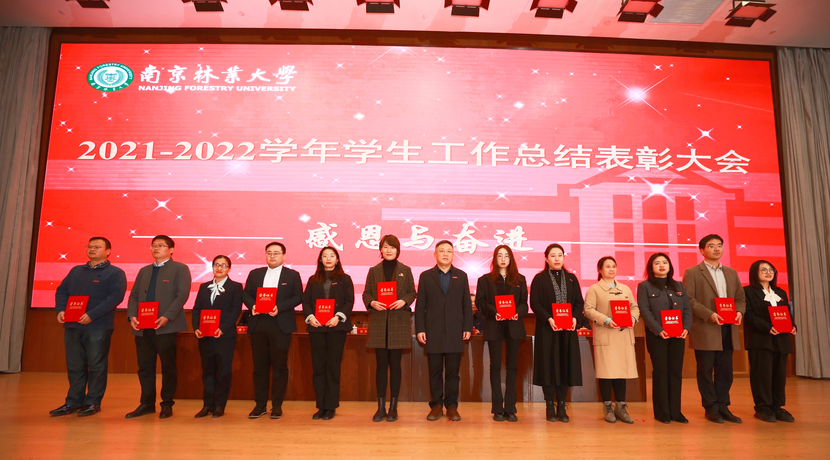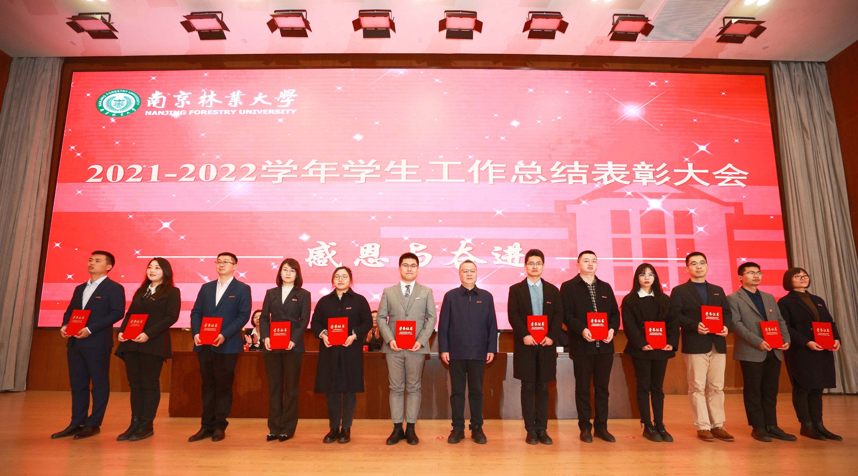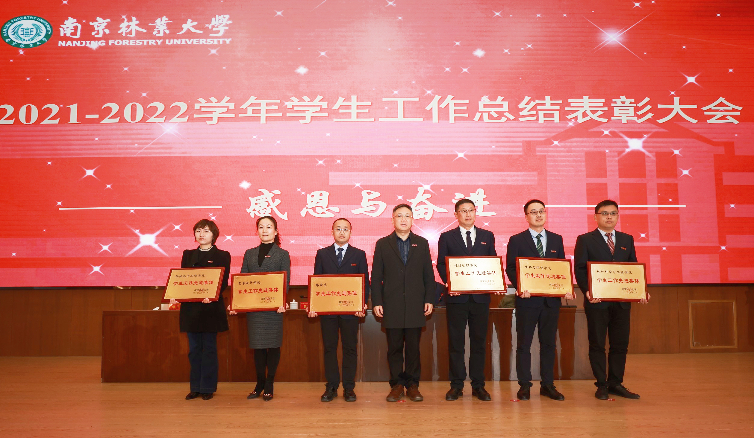 3月3日下午,南京林业大学2021-2022学年学生工作总结表彰大会在校新图书馆报告厅举行,我院学生工作再获佳绩,多位师生获奖,捷报频传。学院学生工作团队继续荣获校“学生工作先进集体”荣誉称号,学院党委副书记、副院长蔡志敏继续荣获校“学生工作先进个人”荣誉称号,研究生辅导员赵淑颖、2018级辅导员齐蓓分别荣获校“优秀辅导员”和“心理健康教育工作先进个人”荣誉称号,516位学生获“国家奖学金”“国家励志奖学金”等荣誉称号。