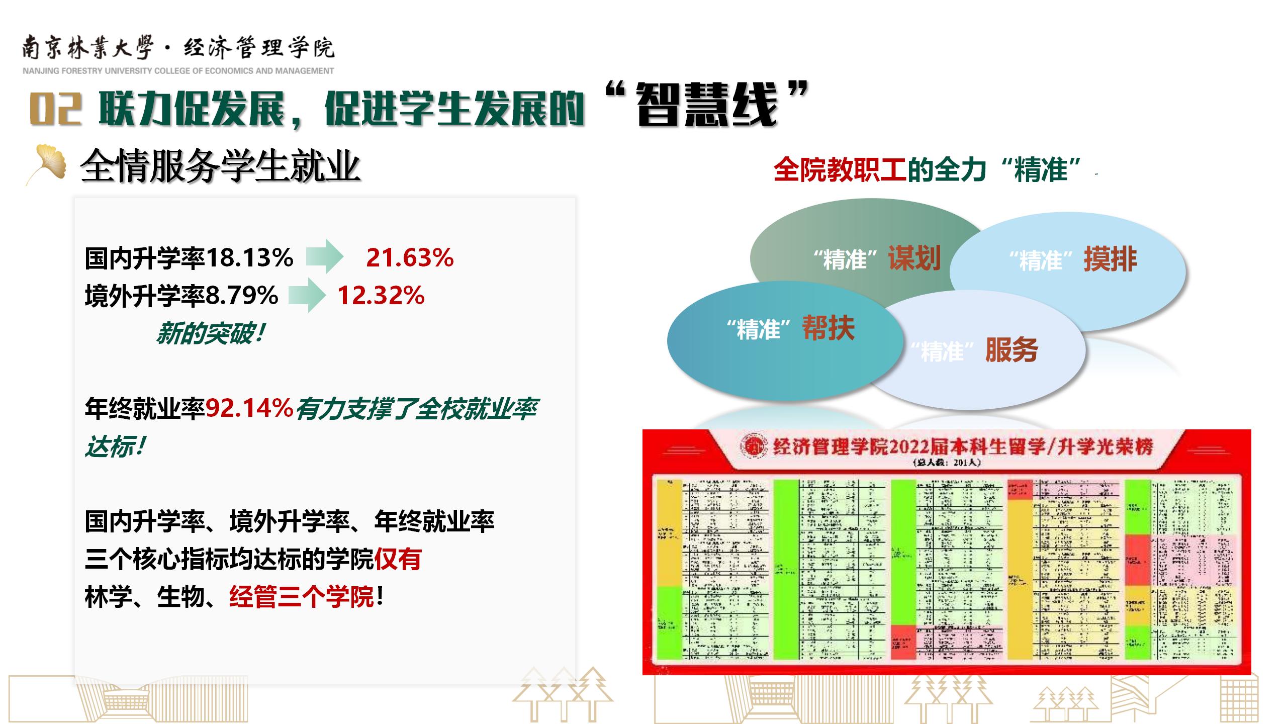 这一年,我们联力助发展,促进学生发展的“智慧线”。我们始终聚焦服务大学生成长成才的相关工作。一年中,我们以“倾听 解惑 成长”为主线,开展院长午间茶活动8期,保持院长和各年级同学的平等对话,为学生成长提供建议。我们精炼队伍、精拓形式、精研内容,着力做好pfut班级的管理和实践工作。我们进一步优化学院科创项目孵化体系,以赛促学,以学促行,以行促效,在学生科创比赛中有了新突破。就业工作是每年的大难题,在经济下行压力、疫情叠加影响等背景下,辅导员与班主任协同联动,摸清底数,为毕业生提供就业岗位云发布、云指导、云招聘,以发布就业信息为例,连续300余天,日均推送招聘信息百余条,以面对面谈话为例,毕业年级辅导员人均一年谈话超1000人次。在院领导的靠前指挥和全院教职工的共同努力下,国内升学率和境外升学取得突出进步。