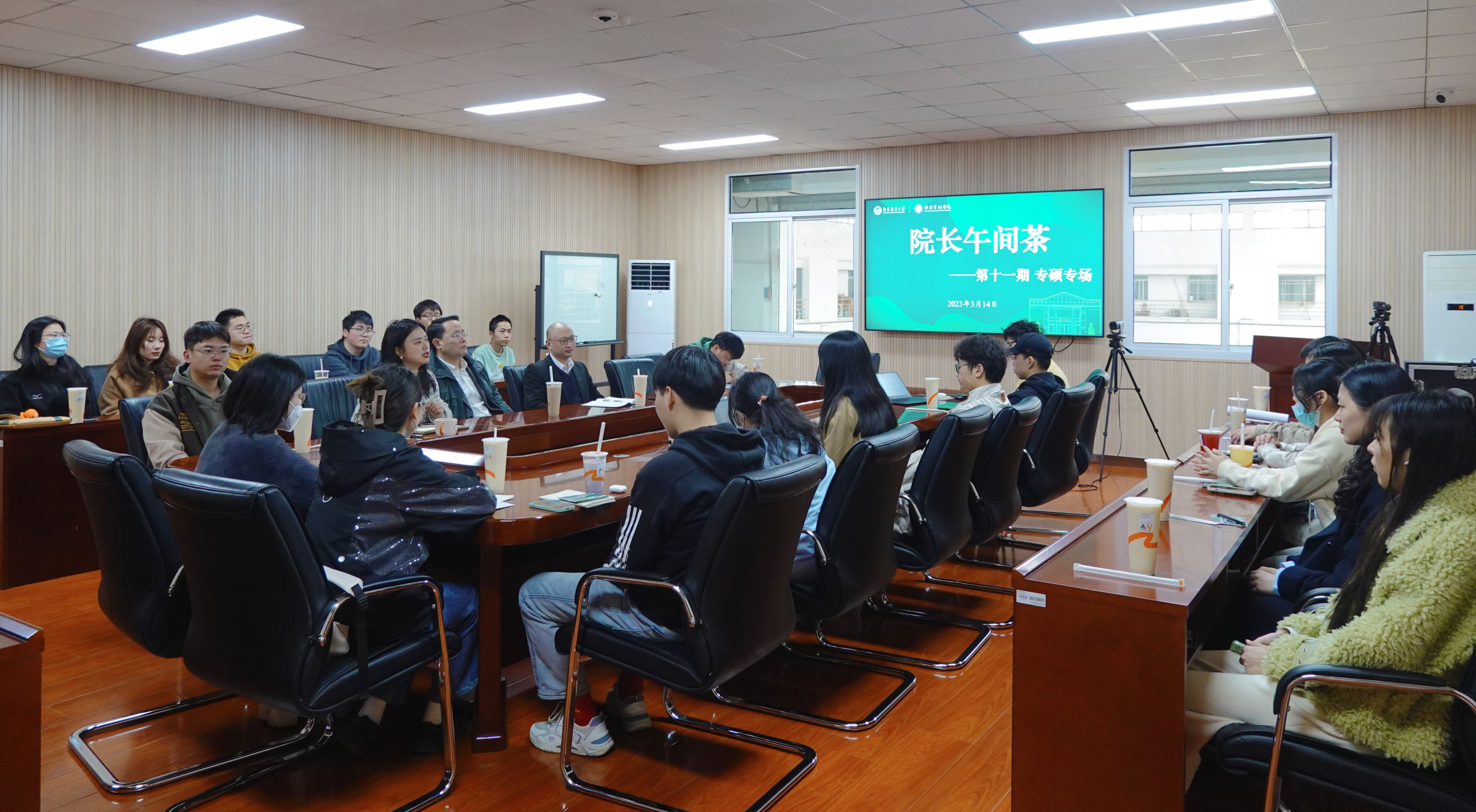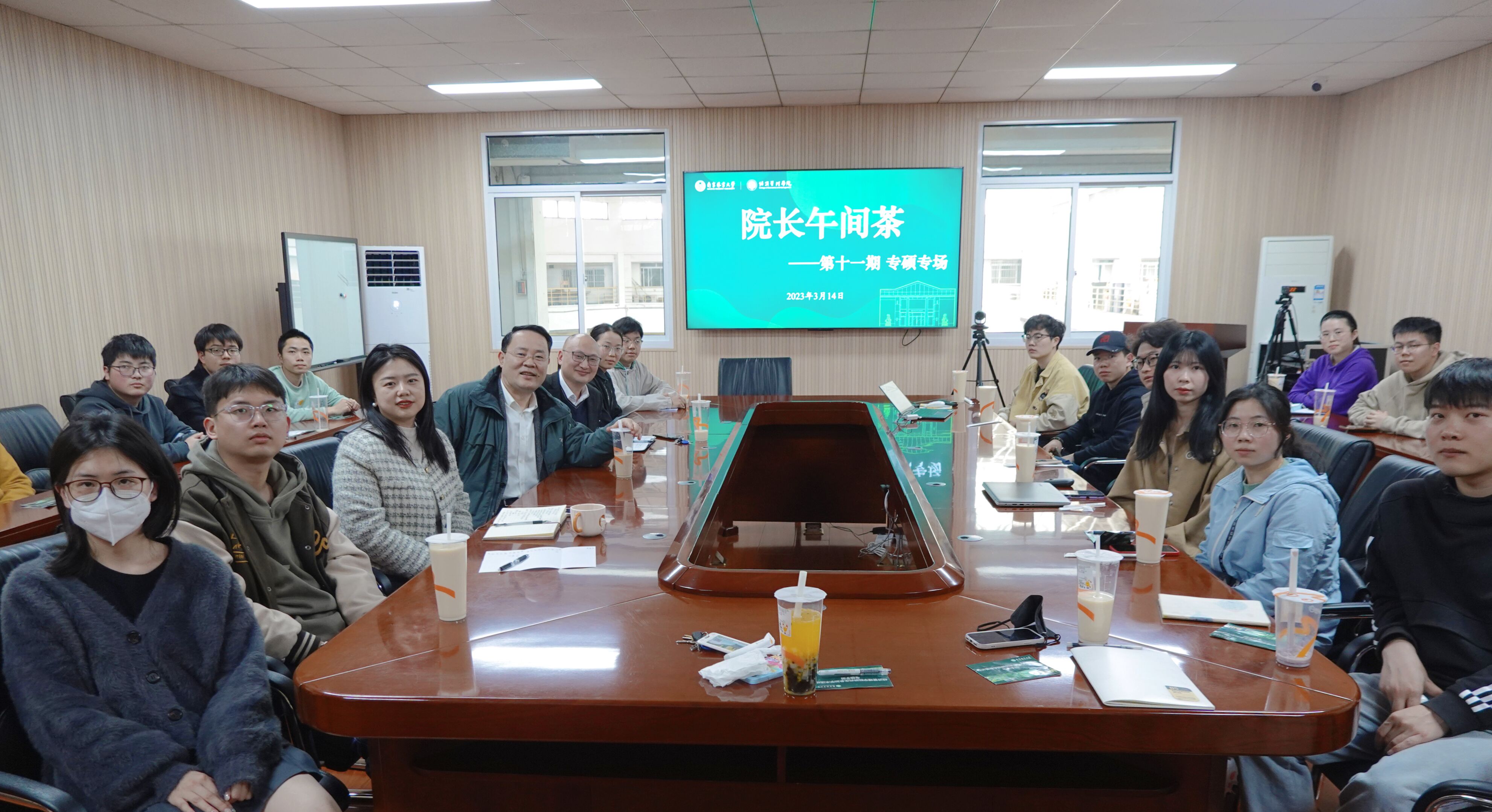 3月14日,经济管理学院第十一期“院长午间茶”(专硕专场)活动在文科楼C208成功举行。院长杨红强、副院长邓德强与学院20余位专业学位硕士研究生代表就人才培养培养方案、导师负责制、职业规划和实践应用等方面进行了轻松交流和深入探讨。研究生辅导员赵淑颖老师主持了本次午间茶活动。