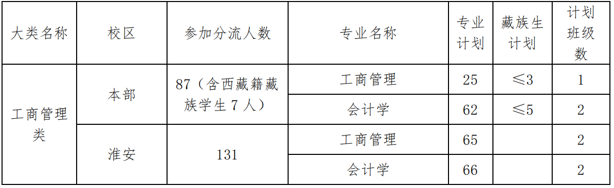 3.生源地为西藏自治区的藏族学生(包括西藏内地高中班录取学生)人数不占大类内各专业名额指标,分流指标单列。