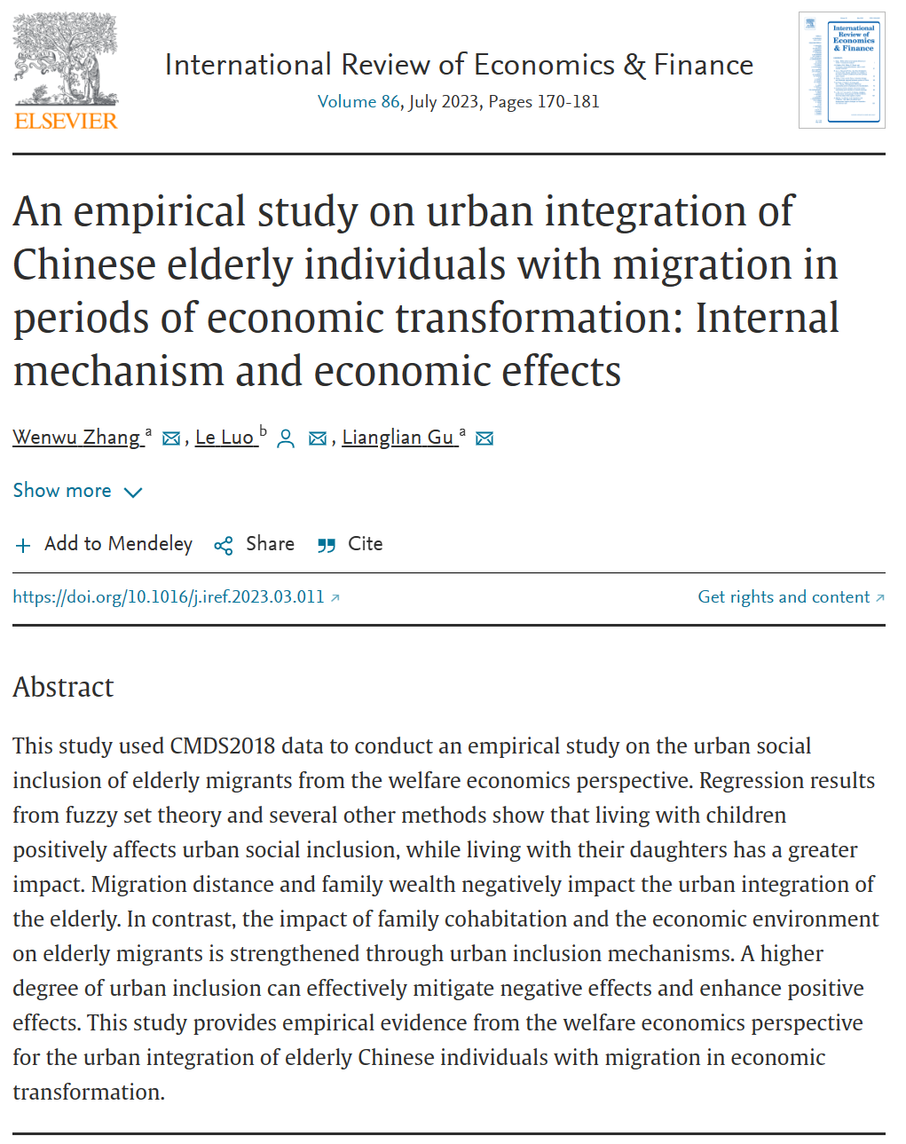 近日,我院张文武教授作为第一作者撰写的学术论文“International Review of Economics & Finance》(国际经济金融评论)接受并在线发表。